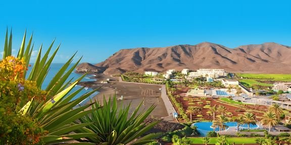 Playa de los Pobres, publiczna, ciemny piasek, miejscami kamienie, łagodne zejście do morza, bezpośrednio przy hotelu (do 300 m w zależności od zakwaterowania), bez serwisu plażowego; Playa de Sotavento, publiczna, szeroka i piaszczysta, uznawana za jedną z najpiękniejszych na wyspie, ok. 36 km od hotelu, parasole i leżaki płatne.