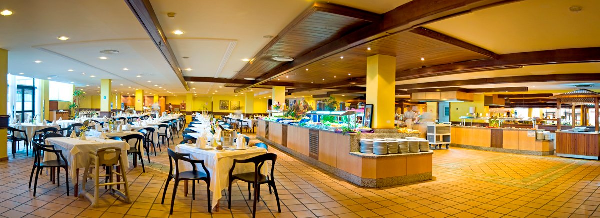 śniadanie (8.00-10.30), obiad (13.00-15.00) i kolacja (18.00-21.00) w formie bufetu; lokalne napoje alkoholowe oraz bezalkoholowe w wyznaczonych barach (11.00-24.00) oraz do posiłków w restauracji; między obiadem a kolacją podawane są przekąski, ciastka, kawa, herbata, lody; wymagane noszenie opasek all inclusive.