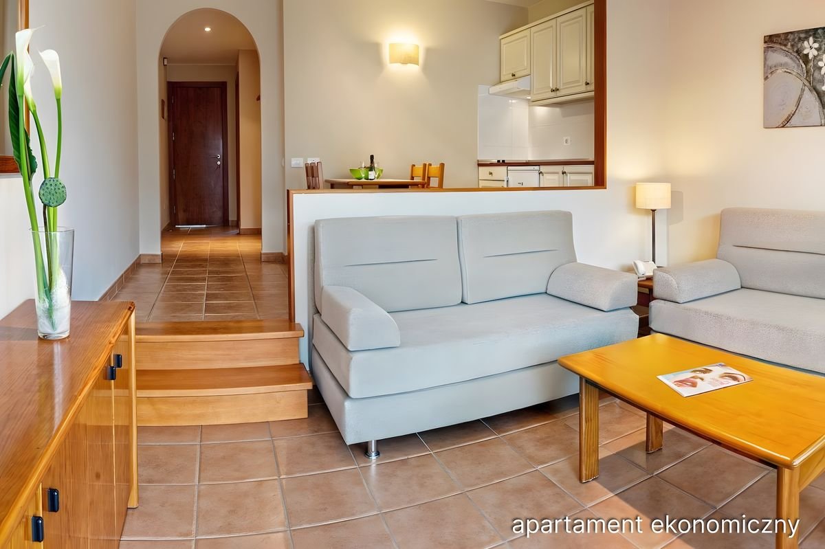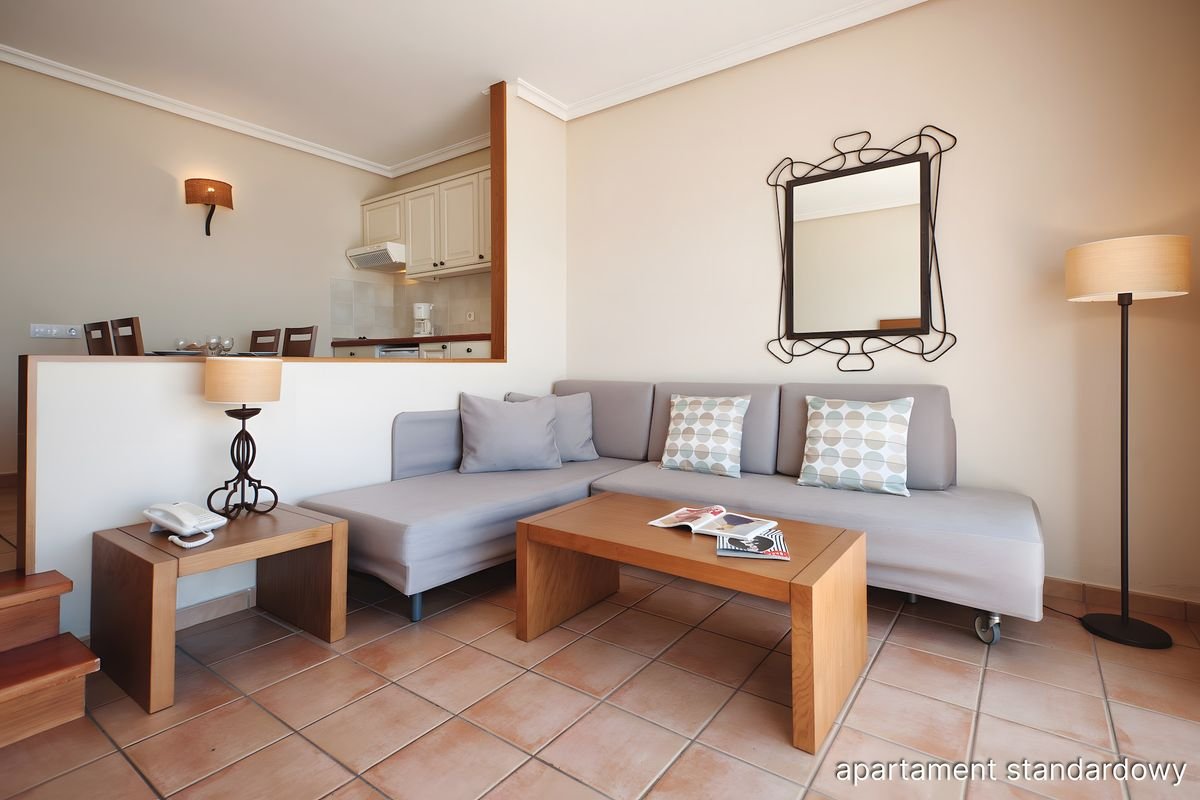 ekonomiczny: 2-os., ok. 30 m², klimatyzowany, salon z aneksem kuchennym i sypialnia wydzielona optycznie, łazienka (prysznic, wc; suszarka), telewizja satelitarna; za opłatą: sejf; balkon lub taras (stolik i krzesełka), widok na ogród lub basen; standardowy: 2-os. (możliwość 1 lub 2 dostawek), ok. 50 m², klimatyzowany, salon z aneksem kuchennym i sypialnia oddzielona drzwiami, wyposażenie jak w apartamencie ekonomicznym; balkon lub taras (stolik i krzesełka), widok na ogród lub basen; widok na morze za dopłatą; apartament standardowy za dopłatą.