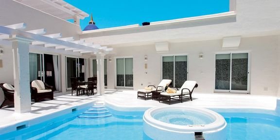 deluxe club villa: dla maks. 6 osób dorosłych i 1 dziecka do 12 lat, ok. 120 m², luksusowa, indywidualnie sterowna klimatyzacja, 3 łazienki (prysznic, wc w łazience lub osobne; suszarka), 3 sypialnie, aneks kuchenny, internet bezprzewodowy, telewizja satelitarna, telefon, lodówka (minibar na zamówienie, płatny), zestaw do kawy/herbaty, sejf, koktajl powitalny; każda willa z prywatnym basenem: nieregularny kształt, słodka woda, ok. 24 m², gł. 0,7-1,5 m, podgrzewany (za opłatą: ok. 19 EUR/dzień, na życzenie), bezpłatne parasole, leżaki i materace, ręczniki na życzenie (wymiana: ok. 2 EUR); za opłatą: dodatkowe sprzątanie (ok. 30 EUR, na życzenie); bezpłatne łóżeczko dla dziecka do 2 lat na zamówienie przed przyjazdem; taras lub ogródek (stolik i krzesełka, suszarka); dodatkowo dla nowożeńców niespodzianka.