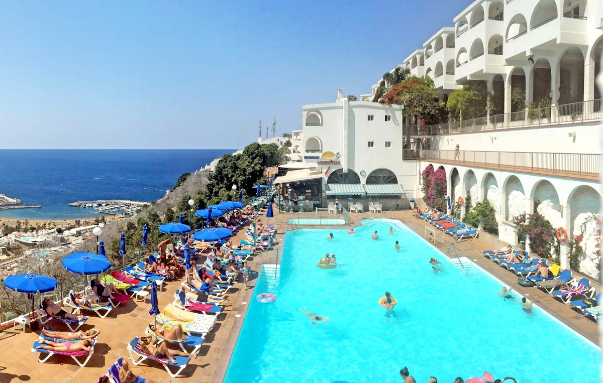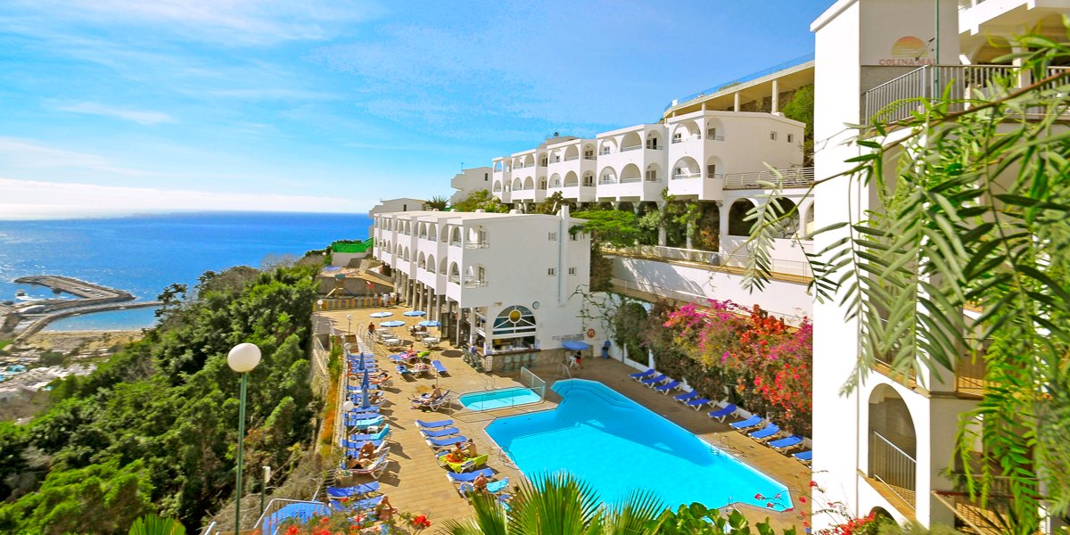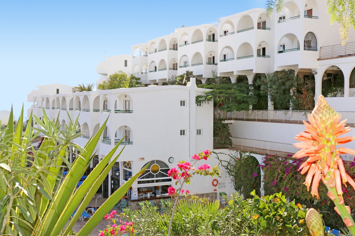 na wzgórzu, ok. 950 m od miejscowości PUERTO RICO, najbliższe sklepy i bary ok. 60 m od hotelu; ok. 40 km od lotniska Las Palmas; przystanek autobusowy ok. 900 m od hotelu.