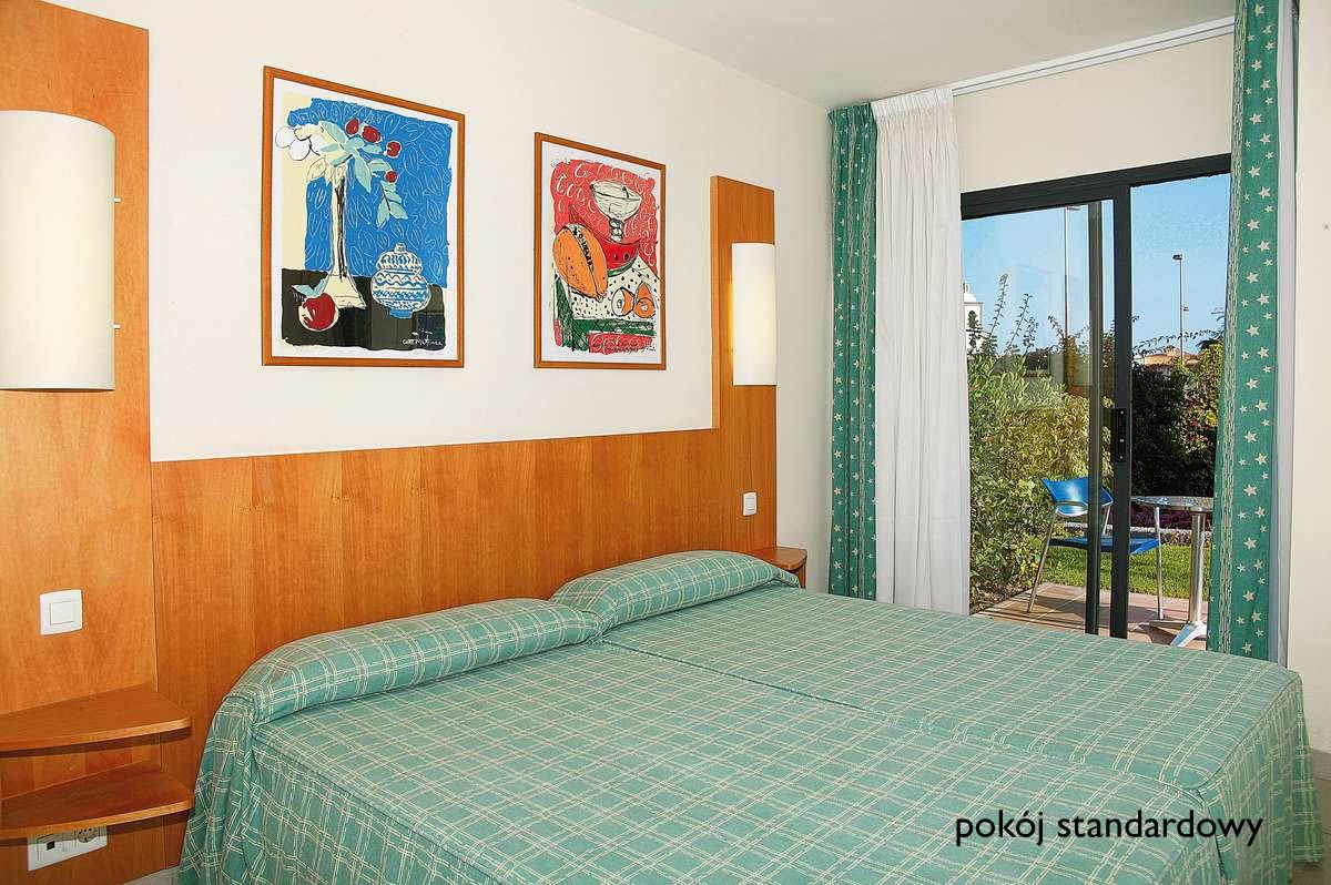 standardowy: 2-os., ok. 20 m², na piętrze, zadbany i elegancki, indywidualnie sterowana klimatyzacja, łazienka (wanna, wc; suszarka), telewizor, telefon; za opłatą: sejf (ok. 12 EUR/tydz.), minibar, łącze internetowe (ok. 6 EUR/dzień); bezpłatne łóżeczko dla dziecka do 2 lat na zamówienie przed przyjazdem; balkon (stolik i krzesełka).; rodzinny: dla maks. 4 os., ok. 35 m², na parterze, część dzienna i sypialna; wyposażenie jak w pokoju standardowym, dodatkowo w pełni wyposażony aneks kuchenny; taras lub ogródek (stolik i krzesełka); pokój rodzinny za dopłatą.