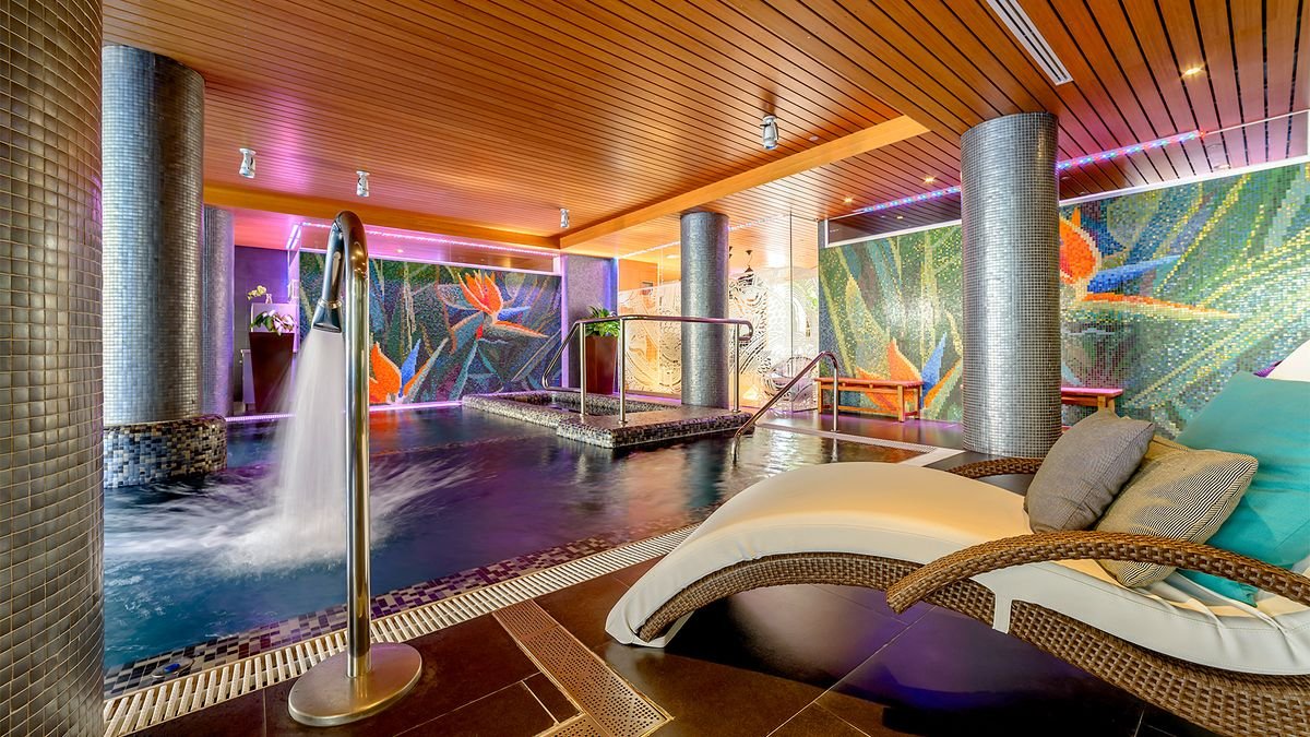 za opłatą: kryty basen, słodka woda, ok. 70 m², 5 pokoi zabiegowych, jacuzzi, kaskada „Swan Neck”, hammam, sauna, bicze wodne, flotarium, masaże na twarz i na ciało