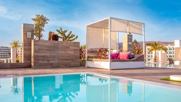 Położony zaledwie kilka kroków od centrum Playa del Ingles, pełnego sklepów i lokalnych knajpek oraz blisko słynnych wydm Maspalomas zaprasza na wyjątkowe wakacje tylko dla dorosłych! Do dyspozycji Gości jest basen z bezpłatnymi leżakami i parasolami, a na dachu taras słoneczny z barem, z którego można podziwiać ocean i piękną panoramę wybrzeża. Na miejscu jest także centrum spa z krytym basenem, hydromasażem i bogatą oferta zabiegów. Swobodna atmosfera oraz miła i pomocna obsługa to gwarancja pełnych relaksu wakacji z przyjaciółmi lub we dwoje.