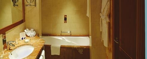 2-os. (możliwość 1 dostawki), duży, luksusowy, indywidualnie sterowana klimatyzacja, piękna łazienka wyłożona marmurem (wanna i prysznic, wc; suszarka), telewizja satelitarna, telefon; za opłatą: sejf (ok. 2,3 EUR/dzień), mini-bar; bezpłatne łóżeczko dla dziecka do 2 lat na zamówienie przed przyjazdem; balkon lub taras (stolik i krzesełka); widok na góry.