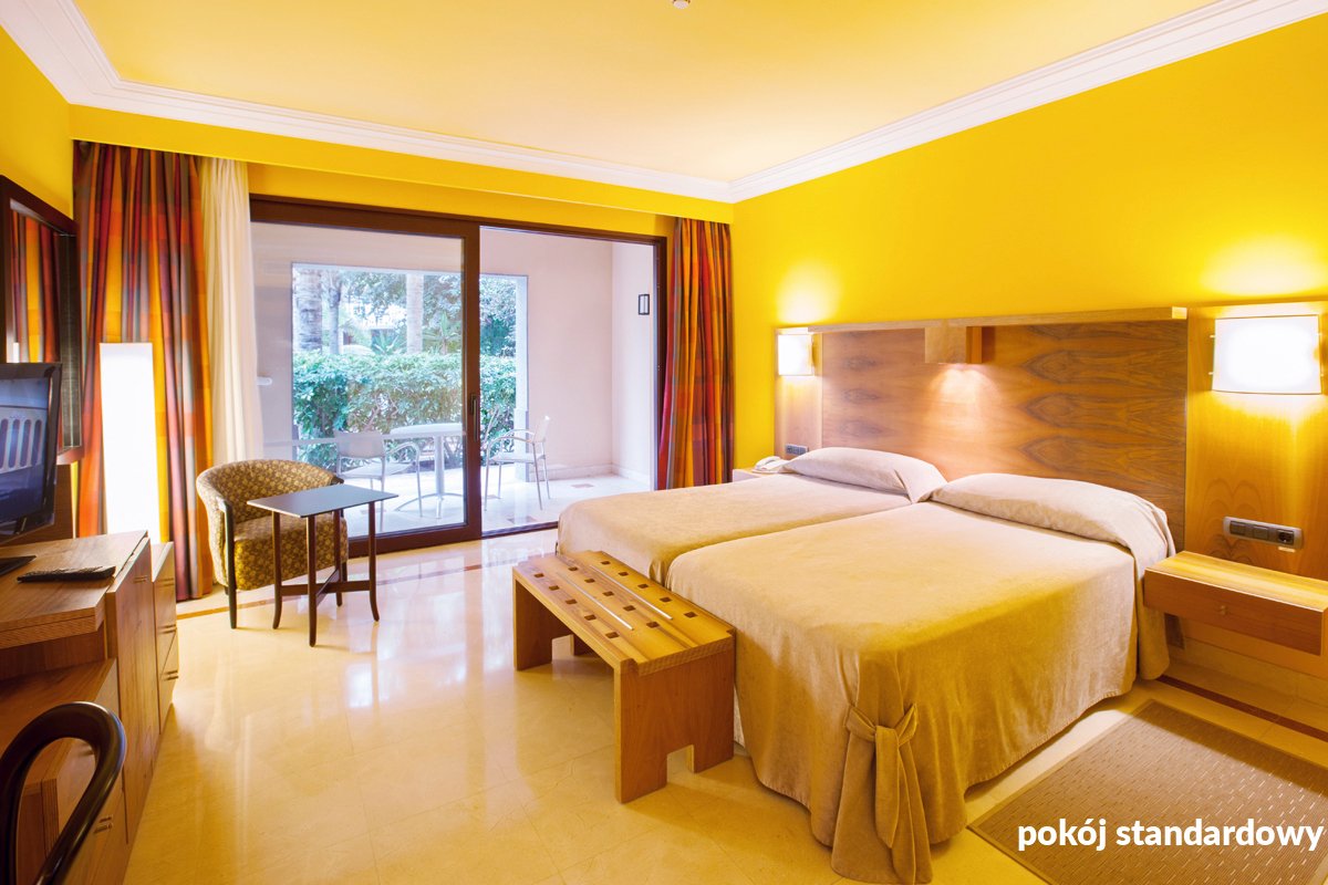 standardowy: 2-os. (możliwość 1 dostawki), ok. 40 m², luksusowy, indywidualnie sterowana klimatyzacja, piękna łazienka wyłożona marmurem (wanna i prysznic, wc; suszarka, szlafroki), telewizja satelitarna, telefon; za opłatą: minibar, sejf; bezpłatne łóżeczko dla dziecka do 2 lat na zamówienie przed przyjazdem; balkon lub taras (stolik i krzesełka); widok na basen za dopłatą; junior suite: 2-os. (możliwość 1 lub 2 dostawek dla dzieci), ok. 70 m², luksusowy, wyposażenie jak w pokoju standardowym z dodatkowym salonem oddzielonym drzwiami; 2 balkony lub taras, widok na ogród lub basen; pokój junior suite na zamówienie, za dopłatą.