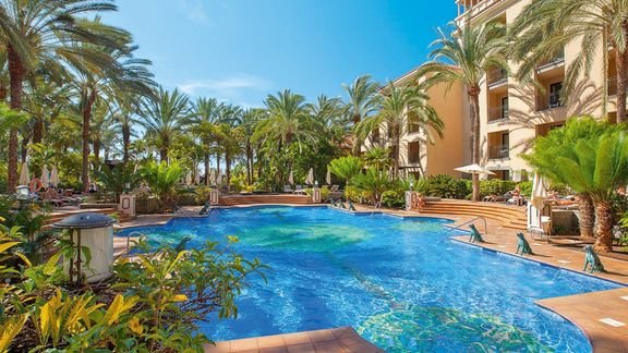 Luksusowy, w stylu kolonialnego pałacu, zachwyca piękną architekturą i stylowymi wnętrzami. Piękne dziedzińce, zdobione balkony i fontanny nawiązują do klasycznych hiszpańskich tradycji. Otoczony wspaniałym parkiem o powierzchni 76.000 m², gdzie rośnie ponad dwa tysiące palm. Prezentem dla zmysłów jest wizyta w hotelowym Spa Corallium.