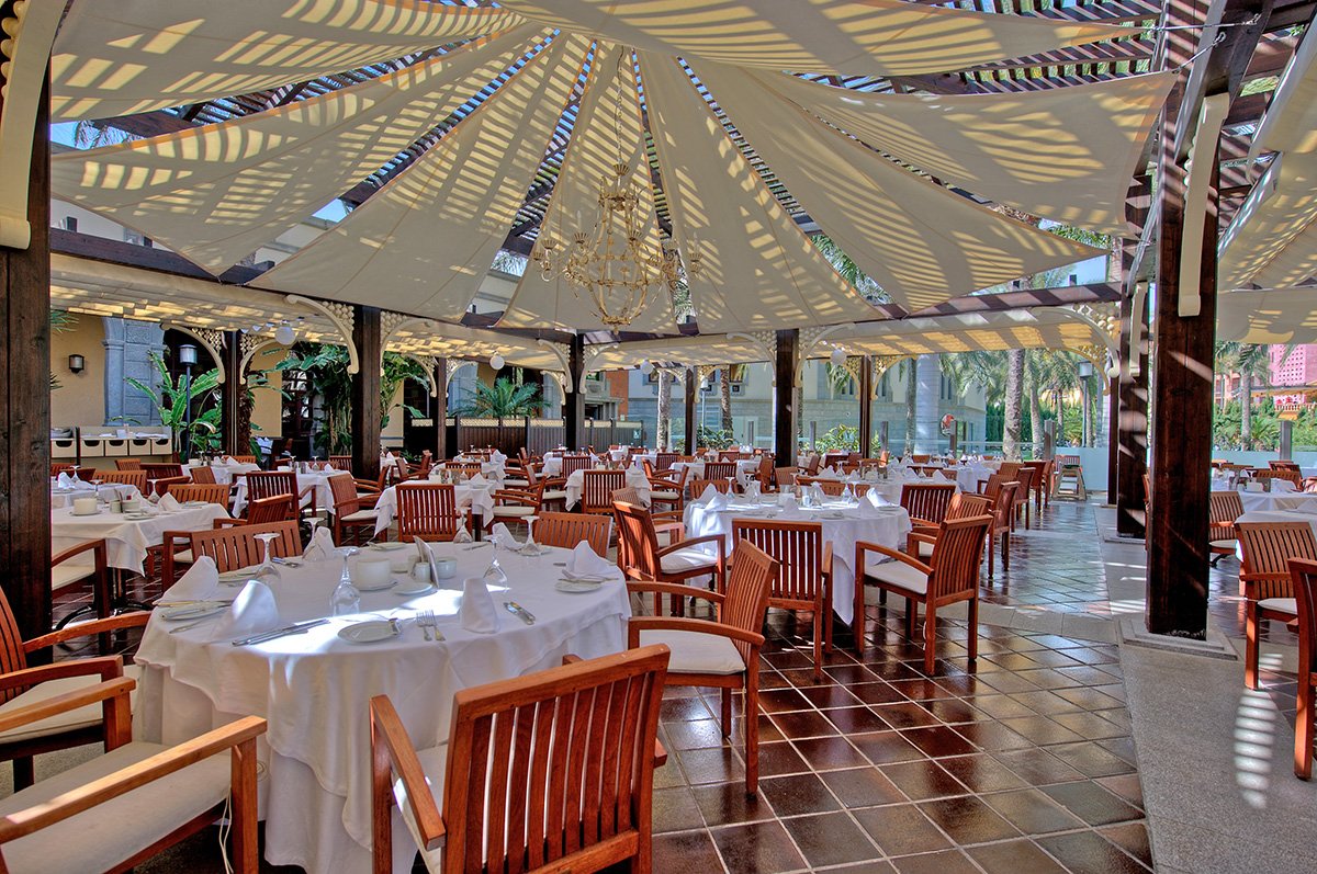 czterogwiazdkowy superior, 1136 pokoi i suit, 5 pięter, 12 wind, duży, elegancki hol, całodobowa recepcja, 3 restauracje: Alameda, El Portico i Atlantico - dania w formie bufetu, dostępne foteliki i menu dla dzieci, 3 restauracje à la carte (za dodatkową opłatą) - Las Rias, El Churrasco, La Toscana, w restauracjach podczas kolacji obowiązuje strój formalny (panowie - długie spodnie), Central - bar główny w holu, La Brasserie - piwiarnia, 4 bary przy basenach: Arenal, La Laguna, Ladon i Solarium; butik, sklep z pamiątkami, minimarket z różnym asortymentem, jubiler; centrum biznesowe, centrum konferencyjne dla maks. 500 osób, piękny, olbrzymi ogród, bezpłatny internet bezprzewodowy w barze Central; za opłatą: fryzjer, pralnia, opiekunka do dziecka, wypożyczalnia samochodów, parking (ok. 12 EUR/dzień); akceptowane karty kredytowe: Visa, Eurocard, MasterCard, American Express, Diners Club.