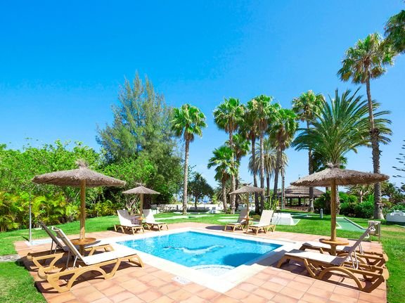 Jeden z najbardziej znanych hoteli na Gran Canarii, goszczący turystów z całego świata od ponad 35 lat, firmowany przez prestiżową grupę Sol Meliá oferuje sprawdzony poziom usług. Położony w wyjątkowo pięknym, subtropikalnym ogrodzie, prowadzącym do plaży, jest idealnym miejscem na pełen relaks. Hotel ma basen ładnie wkomponowany w otoczenie i przyjemne centrum wellness. Wygodne pokoje urządzone są z klasyczną elegancją. Przy hotelu znajduje się kasyno, blisko stąd także do tętniącego życiem Playa del Ingles.