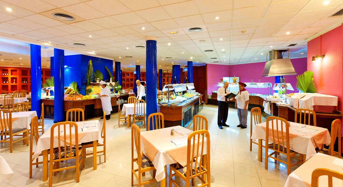 śniadanie (8.00-10.00), obiad (13.00-15.00), kolacja (19.00-21.30) w formie bufetu w restauracji głównej; przekąski w barze przy basenie (13.00-18.00); napoje bezalkoholowe i lokalne napoje alkoholowe w wyznaczonych barach (10.00-23.00); wymagane noszenie opasek all inclusive.