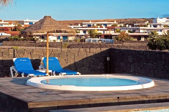 basen, nieregularny kształt, słodka woda, ok. 220 m², gł. 1,4 m, sezonowo podgrzewany, otwarte jacuzzi, 2 brodziki dla dzieci, słodka woda, przy basenie bezpłatne parasole, leżaki i ręczniki; solarium, dyskoteka; ok. 2 km od hotelu Marina Rubicon ze sportami wodnymi.