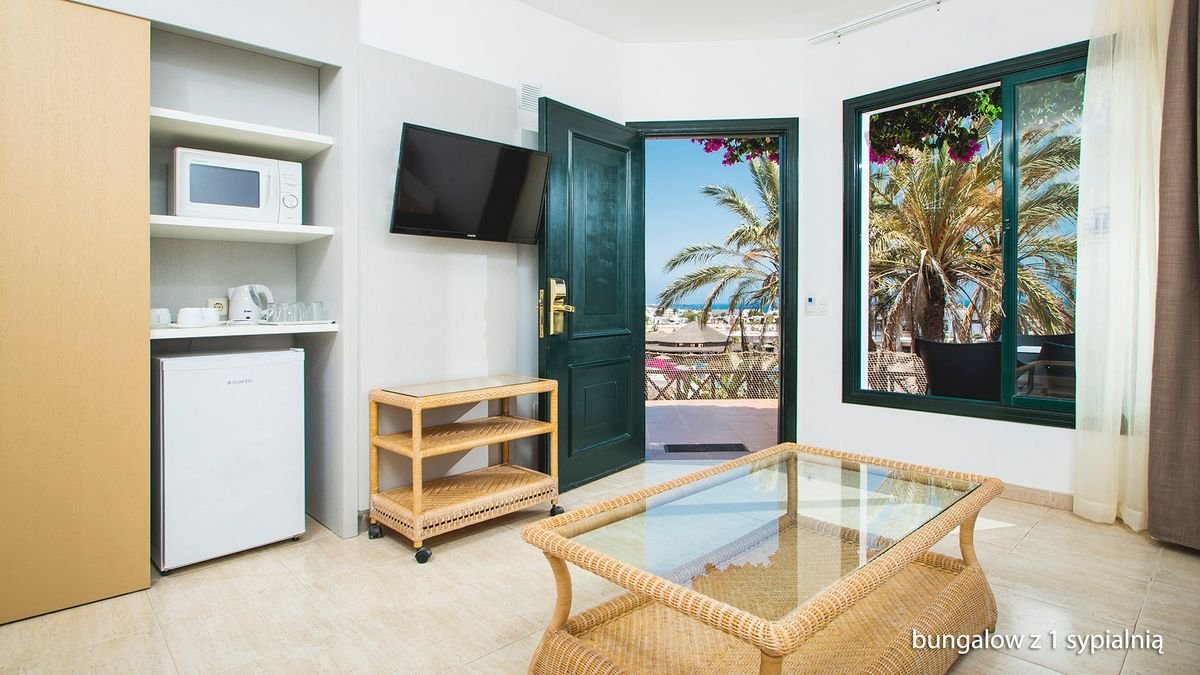 Rodzinny kompleks hotelowy położony w lubianej miejscowości Playa Blanca, gdzie jest kilka pięknych piaszczystych plaż oraz szeroki wybór barów, sklepów i restauracji. Przestronne bungalowy z jedną lub dwiema sypialniami zapewnią komfortowy wypoczynek nawet dla 5 osób! Każdy z nich ma taras i jest otoczony bujną, kolorową roślinnością. Warto wybrać się bezpłatnym hotelowym busem do pobliskiego parku wodnego Dino Park, do którego bilety wstępu w atrakcyjnej cenie można zakupić w pakiecie z hotelem, jeszcze przed wylotem!