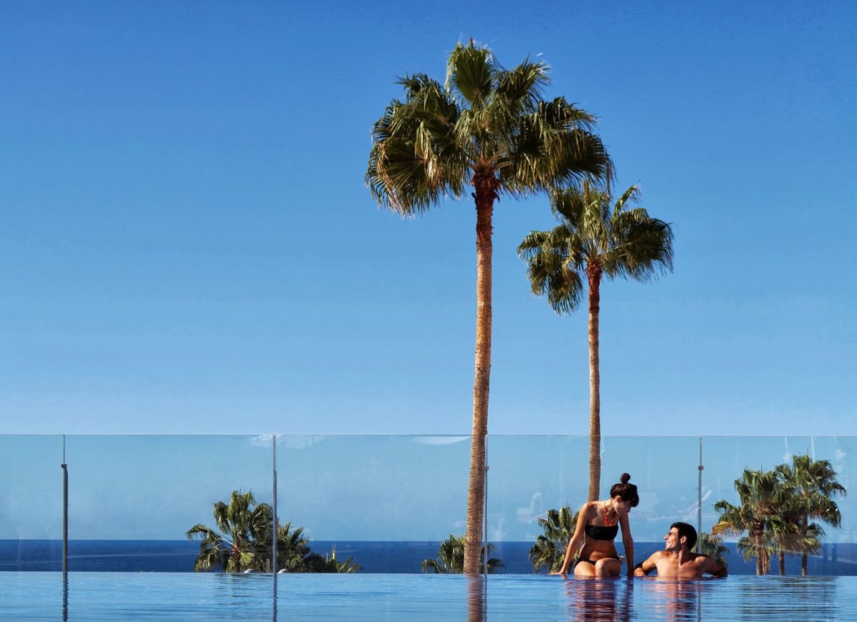 Nowoczesny, ładnie zaaranżowany, firmowany przez znaną hiszpańską sieć hotelową, oferuje wszystkie wygody na piękne kanaryjskie wakacje. Hotel leży niedaleko plaży Torviscas i Puerto Colon z restauracjami i barami. Do dyspozycji Gości jest dwupoziomowy słoneczny taras, z widokiem na Ocean i wysepkę La Gomera, na którym są dwa baseny: infinity i basen w kształcie serca. Na miejscu jest także nieduże spa. Hotelowe restauracje serwują smaczne posiłki w ramach all inclusive.