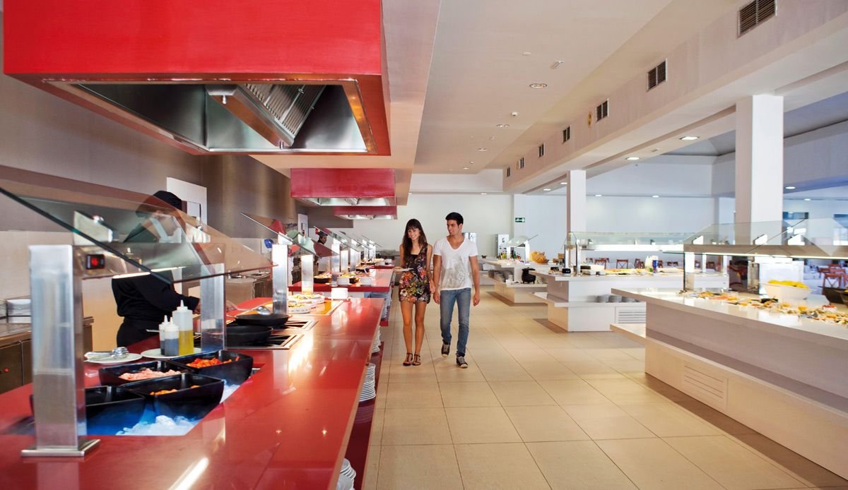 śniadanie (7.30-10.30), obiad (13.00-15.00), kolacja (18.30-21.30) w formie bufetu w restauracji głównej; przekąski w barze przy basenie (10.00-17.30) i w snack-barze (11.00-18.30); napoje bezalkoholowe i lokalne napoje alkoholowe (10.30- 24.00); wymagane noszenie opasek all inclusive.