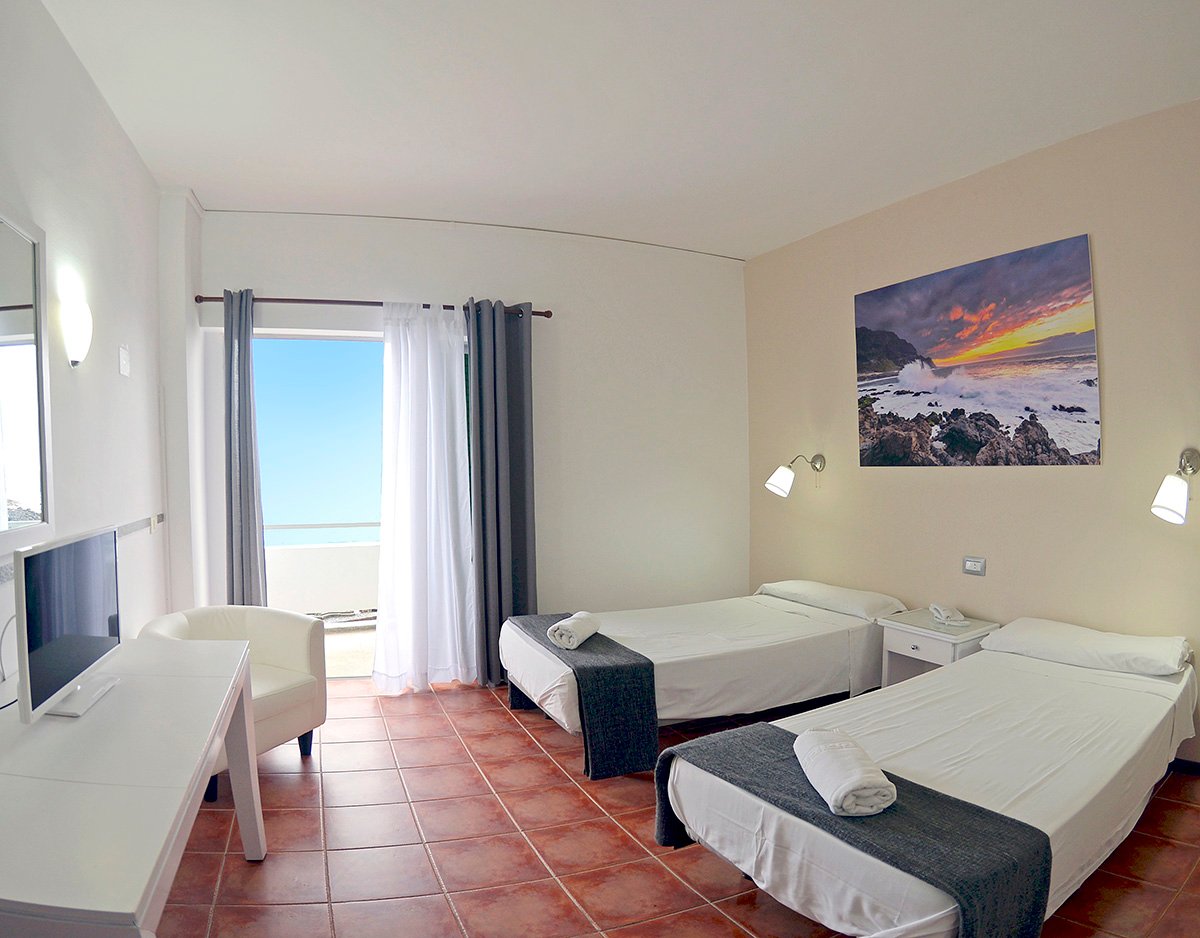 standardowy: 2-os. (możliwość 1 dostawki), ok. 22 m2, łazienka (prysznic, wc), telewizor, telefon; balkon lub taras (stolik i krzesełka); widok na morze za dopłatą.