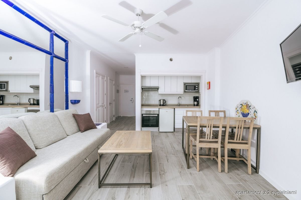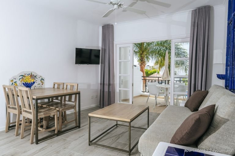 Odwiedź tętniący życiem kurort Costa Adeje na rajskiej Teneryfie i wybierz jeden z obszernych, doskonale wyposażonych apartamentów w Parque del Sol! Czekają tu na Ciebie osobne sypialnie i jasne pokoje dzienne z wyposażonymi aneksami kuchennymi, które pozwolą samodzielnie przygotować posiłek. Jeśli jednak wolisz poczuć urlop w pełni, koniecznie odwiedź jedną z dwóch bufetowych restauracji znajdujących się w hotelu. Basen z wydzieloną częścią dla dzieci jest doskonałym pomysłem na rodzinne spędzanie czasu, siłownia pomoże zadbać o formę, a minigolf i plac zabaw nie pozwolą nawet na chwilę nudy! Najbliższa okolica pełna jest turystycznych rozrywek i doskonałych knajpek oraz sklepów, a nieco dalej znaleźć można takie atrakcje jak Aqualand, Siam Park i Jungle Park – tutaj każdy znajdzie coś dla siebie!