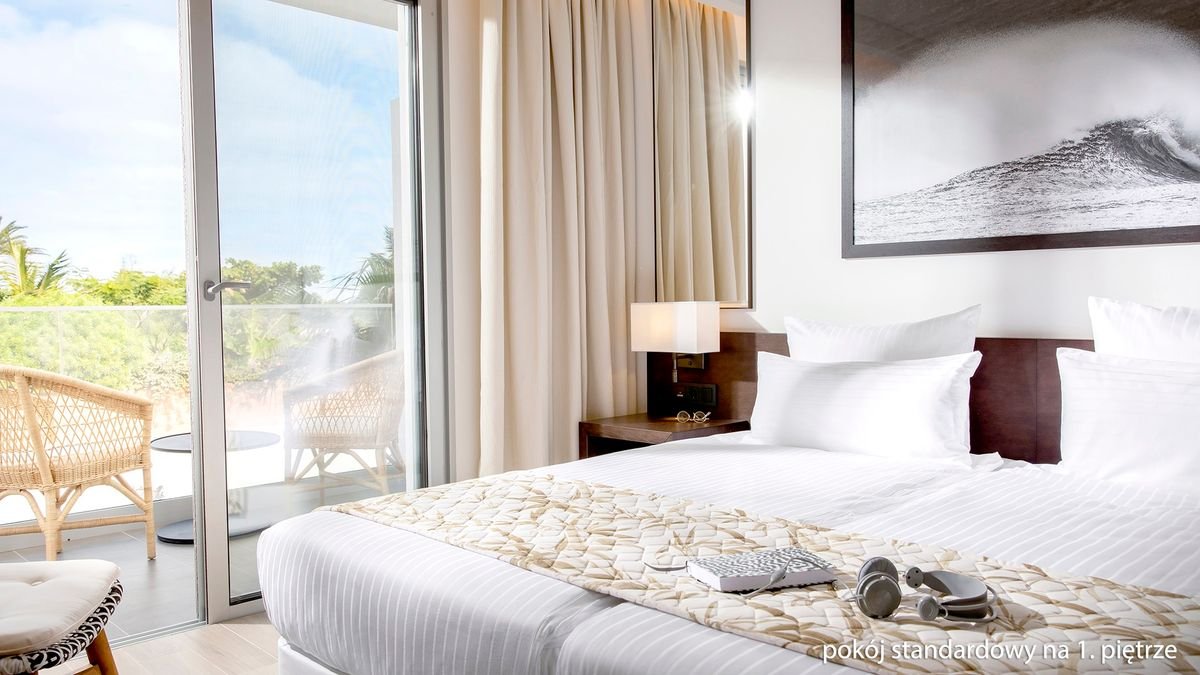 basen infinity, podgrzewany (w terminie: grudzień-luty), słodka woda, prostokątny kształt, ok. 335 m², gł. 1,3 m, basen relaksacyjny, podgrzewany (w terminie: grudzień-luty), słodka woda, prostokątny kształt, ok. 385 m², gł. 1,3 m, przy basenach bezpłatne leżaki i ręczniki; siłownia, sala fitness, joga, pilates, gimnastyka, aqua aerobik, siatkówka plażowa; animacje, muzyka na żywo, wieczory tematyczne, imprezy na plaży, przedstawienia; nowoczesne centrum spa: bezpłatnie: biosauna, sauna fińska, pokój relaksacyjny, za opłatą: masaże, zabiegi pielęgnacyjno-kosmetyczne; za opłatą: sporty wodne na plaży (kitesurfing, windsurfing, stand-up paddling), szkoła windsurfingu, szkoła żeglarska.