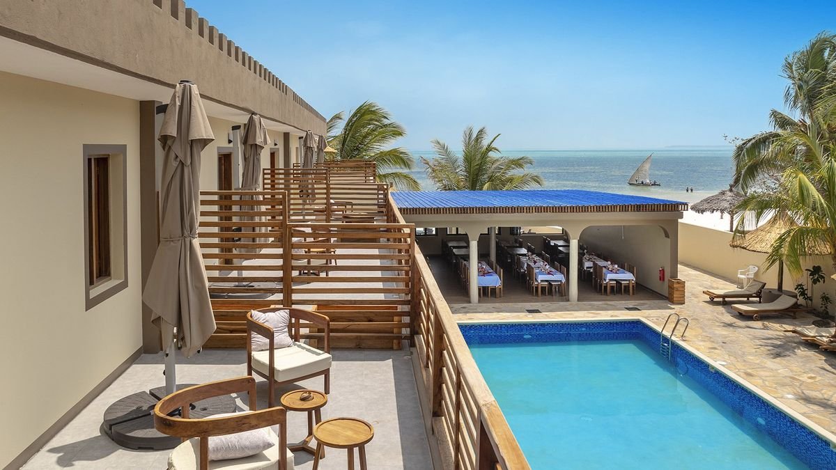 Wyobraź sobie przepiękne plaże z białym, miękkim piaskiem i palmami kokosowymi, błekit Oceanu Indyjskiego oraz tropikalny klimat z niesamowitą przyrodą – to właśnie Zanzibar! Zatrzymaj się w kameralnym miejscu, gdzie od razu poczujesz atmosferę, która tutaj panuje, dzięki unikatowemu położeniu tuż przy plaży i otoczeniu bujnego palmowego ogrodu. Czekają na Ciebie pokoje zaprojektowane w lokalnym stylu z drewnianymi akcentami, basen z wydzieloną częścią dla dzieci, a dla aktywnych siłownia. Zarezerwuj już dziś wakacje na rajskiej wyspie!