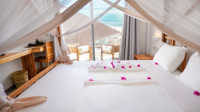 Komfortowy, położony przy pięknej prywatnej plaży z białym piaskiem, idealny na romantyczny urlop dla par w tropikalnym stylu. Do dyspozycji Gości jest duży basen z widokiem na Ocean Indyjski, restauracja serwująca smaczne dania oraz kącik masażu, gdzie można się w pełni zrelaksować. Atutem hotelu jest wysoki poziom świadczonych usług i miła obsługa. Świetna lokalizacja blisko centrum Matemwe zachęca do spacerów w promieniach gorącego słońca i zwiedzania okolicy. Uroki tego miejsca i egzotyczny klimat pozwolą Ci stworzyć wspomnienia, które pozostaną w pamięci na bardzo długo!