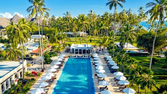 Tu spełniają się sny i marzenia o magicznym Zanzibarze. Absolutnie wyjątkowy hotel, nowoczesny i luksusowy, oczarowuje pełną niespodzianek architekturą: bliżej plaży przypomina pałac w stylu afrykańsko-arabskim, stylowe bungalowy na wzgórzu, dalej, idealnie harmonizują z urodą otaczającej go przyrody i ogromnym, wypielęgnowanym ogrodem, który dochodzi do plaży z białym, pudrowym piaskiem. Eleganckie wnętrza i komfortowe pokoje zostały urządzone z dbałością o najmniejszy szczegół i wyposażone w cenne meble z drewna tekowego, dzieło włoskich projektantów. Hotelowe restauracje kuszą smakami kuchni świata, a nowoczesne spa rozpieszcza relaksującymi zabiegami. Do dyspozycji Gości także 2 baseny, w tym 1 z fantastycznym widokiem na zjawiskową plażę z białym piaskiem i ocean.