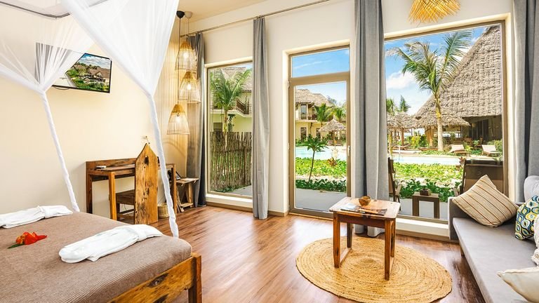 Jeśli potrzebujesz wakacji w prawdziwie rajskim otoczeniu i kameralnej atmosferze, mamy dla Ciebie prawdziwą perełkę! Otwarty w czerwcu 2025 r. i zaprojektowany w tradycyjnym stylu suahili z wykorzystaniem luksusowych materiałów, to idealny wybór dla par i rodzin ceniących sobie spokój. Zachwyci Cię piaszczysta plaża z jasnym piaskiem, będąca na wyciągnięcie ręki, 2 baseny i centrum spa, gdzie doświadczysz błogiego relaksu podczas masaży i zabiegów pielęgnacyjnych. W przestronnych i komfortowych pokojach, wykończonych w jasnych, ciepłych barwach, znajdziesz wszystko, co potrzebne do odpoczynku, a Twój pobyt uświetni pomocna i przyjazna obsługa, która zadba o każdy szczegół, byś zapamiętał pobyt na Zanzibarze na długie lata!