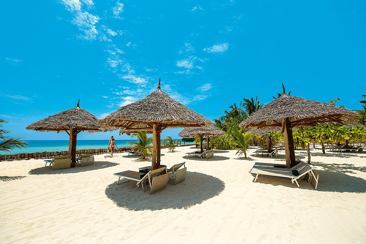 Nungwi, publiczna, piaszczysta – biały, pudrowy piasek, pomost o długości ok. 100 m, łagodne zejście do morza, bezpośrednio przy hotelu, ok. 400 m od recepcji, dojście przez hotelowy ogród; minimalne przypływy/odpływy umożliwiają korzystanie z plaży przez cały dzień; bezpłatne parasole i leżaki w części ogrodu przylegającego do plaży.