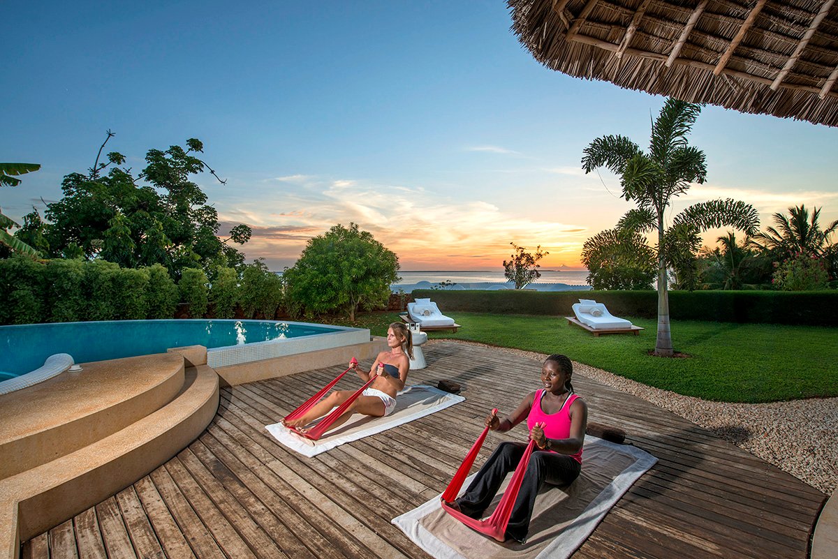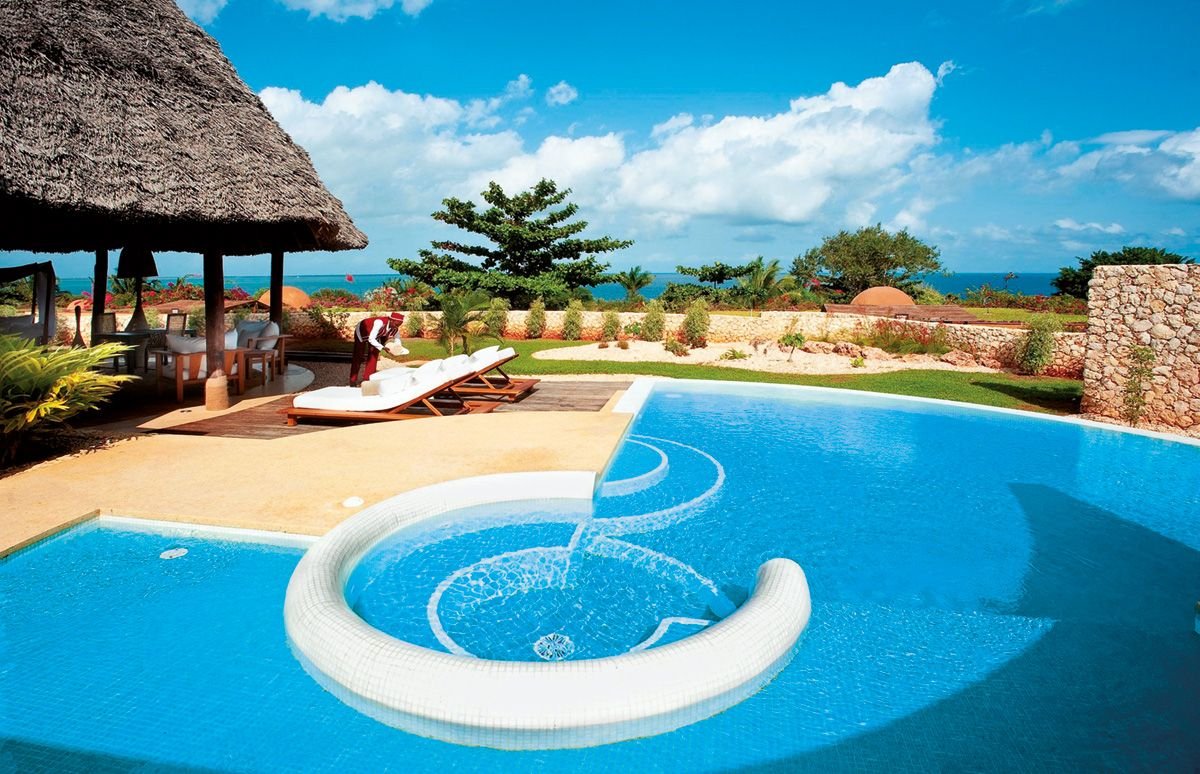 w hotelu La Gemma dell’Est: basen, nieregularny kształt, woda morska mieszana ze słodką, ok. 1500 m², gł. 1,5 m, wydzielona część dla dzieci, przy basenie bezpłatne parasole, leżaki, materace i ręczniki; kort tenisowy z oświetleniem i wypożyczalnią sprzętu (płatna), siłownia, aqua aerobik, kajaki, siatkówka plażowa; wieczorne animacje dla dorosłych; za opłatą: centrum nurkowe Padi, sporty wodne na plaży; na terenie kompleksu: centrum Mvua African Rain Spa: łaźnia turecka, hydroterapia; za opłatą: masaże z użyciem naturalnych kosmetyków, prywatne zajęcia pilatesu (na zapytanie).