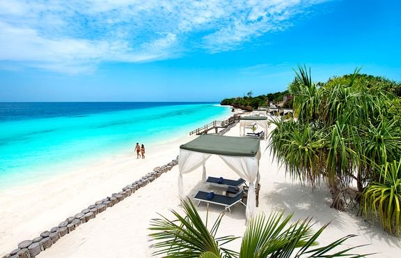 Nungwi, publiczna, piaszczysta – biały, pudrowy piasek, pomost o długości ok. 100 m, łagodne zejście do morza, bezpośrednio przy hotelu, dojście przez hotelowy ogród; minimalne przypływy/odpływy oceanu umożliwiają korzystanie z plaży przez cały dzień; goście hotelu mają dostęp do prywatnej plaży, bezpłatne parasole i ręczniki.