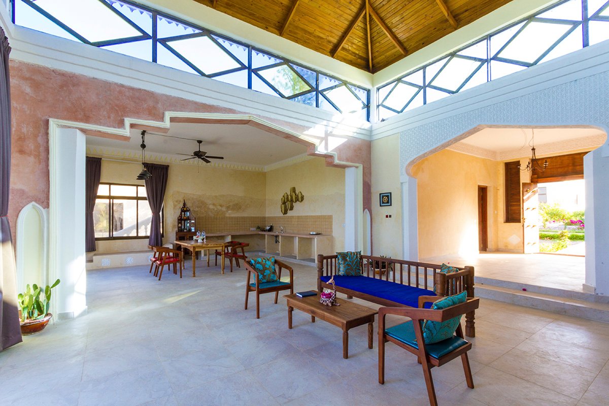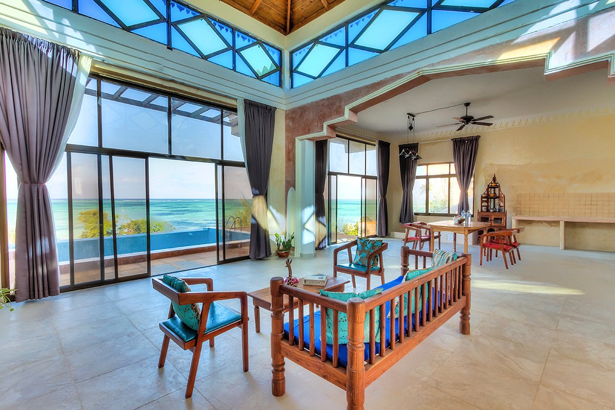 na klifie, w wiosce KIWENGWA, ok. 3 km od najbliższych sklepów i barów, przy drodze lokalnej, ok. 35 km od miejscowości Nungwi; ok. 60 km od lotniska na Zanzibarze.