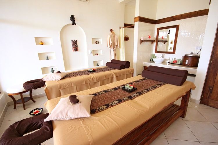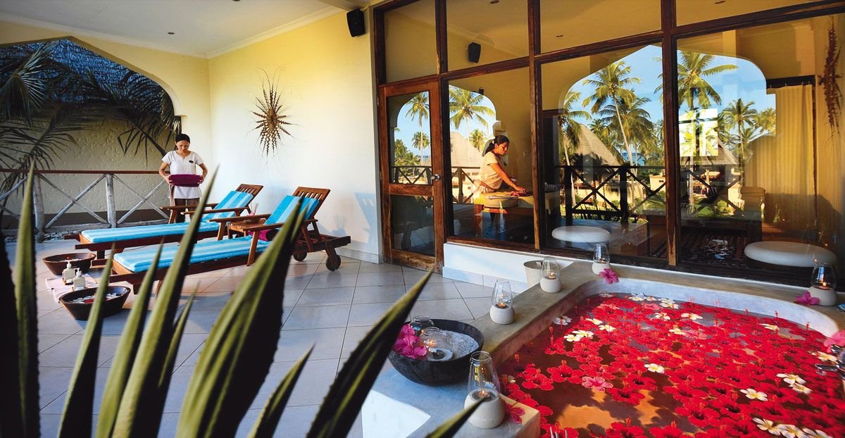 centrum Spa Mvua African Rain: obsługa z Tajlandii, jacuzzi z gorącą i zimną wodą, sauna, hammam, basen z pięknym widokiem na ogród i ocean, różnego rodzaju zabiegi na całe ciało, masaże gorącymi kamieniami, i inne przygotowane na bazie lokalnych naturalnych kosmetyków.
