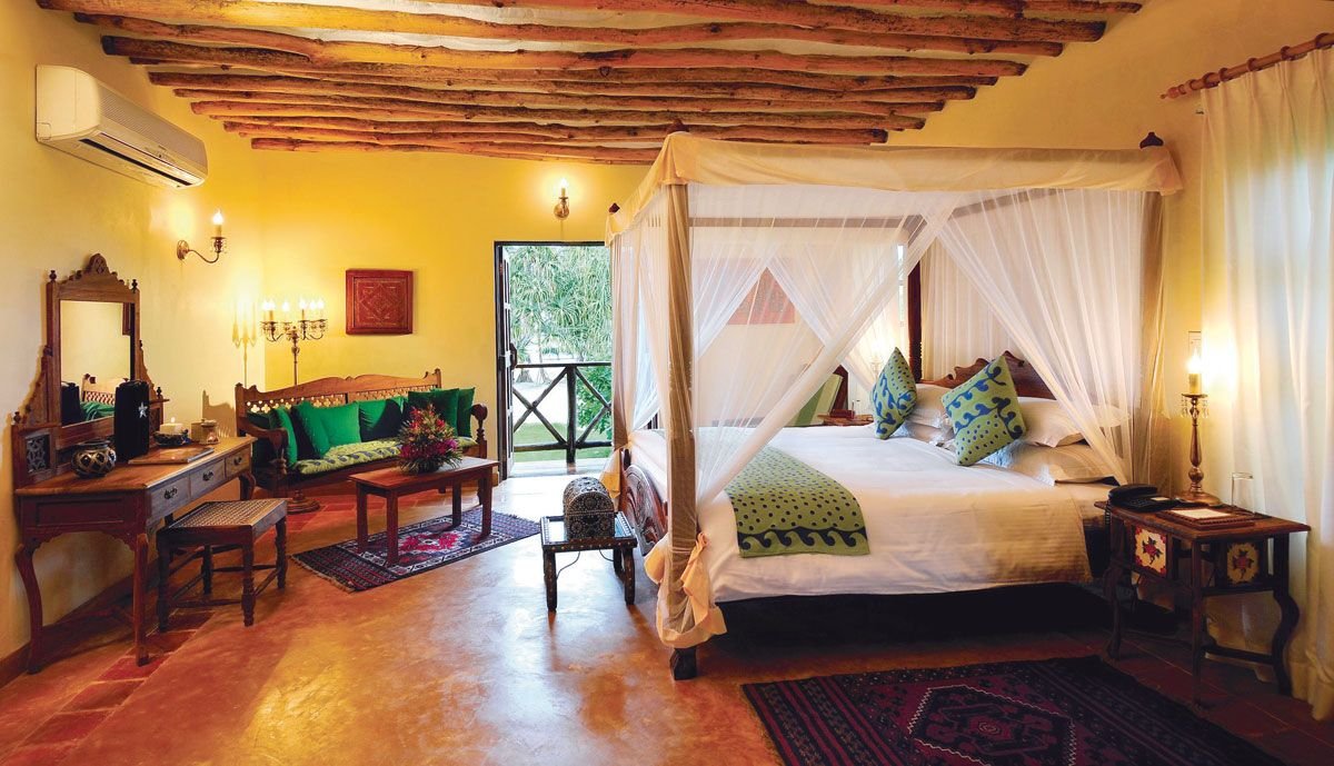 deluxe: 2-os. (możliwość 1 dostawki), ok. 40 m², luksusowy, elegancki, w stylu suahili, indywidualnie sterowana klimatyzacja, wentylator, łazienka (wanna, prysznic, wc; suszarka), moskitiera, telewizja satelitarna, telefon, lodówka/mini-bar, zestaw do kawy/herbaty, sejf; balkon lub taras (stolik i krzesełka); widok na morze za dopłatą; suite beach front: 2-os. (możliwość 1 lub 2 dostawek), ok. 60 m², pokój dzienny i sypialnia; wyposażenie jak w deluxe, dodatkowo: szlafroki, jacuzzi w łazience, telewizor LCD, room-service; widok na ocean na zamówienie za dopłatą.