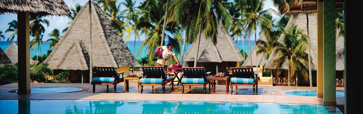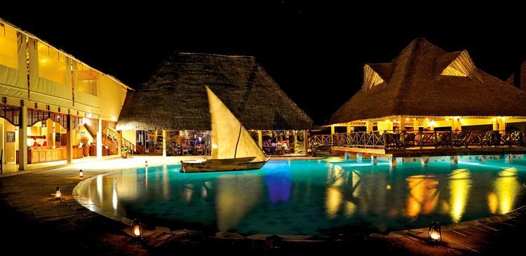 pięciogwiazdkowy, luksusowy, elegancki i nowoczesny, zbudowany w 2007 r., łącznie 154 pokoje, kilkanaście budynków; część hotelu leży na niewielkim wzniesieniu; 1 piętro, przestronne i eleganckie lobby, całodobowa recepcja, restauracja główna - dania w formie bufetu, kuchnia międzynarodowa z kącikiem afrykańskim, show-cooking, dostępne foteliki i menu dla dzieci, dania wegetariańskie, Samaki - à la carte, kuchnia międzynarodowa, owoce morza, dostępne foteliki dla dzieci, snack-bar Ngalawa - pizza, przekąski, słodycze; 2 bary przy basenie; kantor, butik: biżuteria, odzież, pamiątki, pocztówki; sala konferencyjna dla 100 osób, taras z widokiem na ogromny ogród i ocean; za opłatą: kawiarenka internetowa (ok. 5 EUR/30 min), internet bezprzewodowy w lobby, room-service, pralnia; z uwagi na różnice poziomów na terenach hotelowych, niepolecany osobomz ograniczeniami ruchowymi; akceptowane karty kredytowe: Visa, MasterCard.
