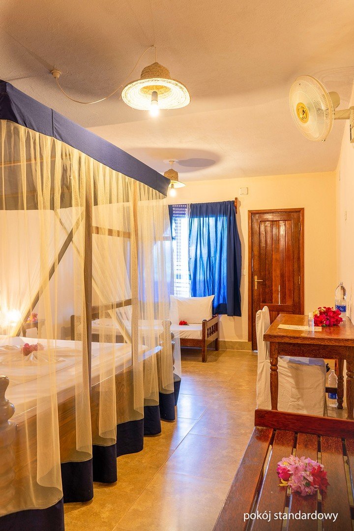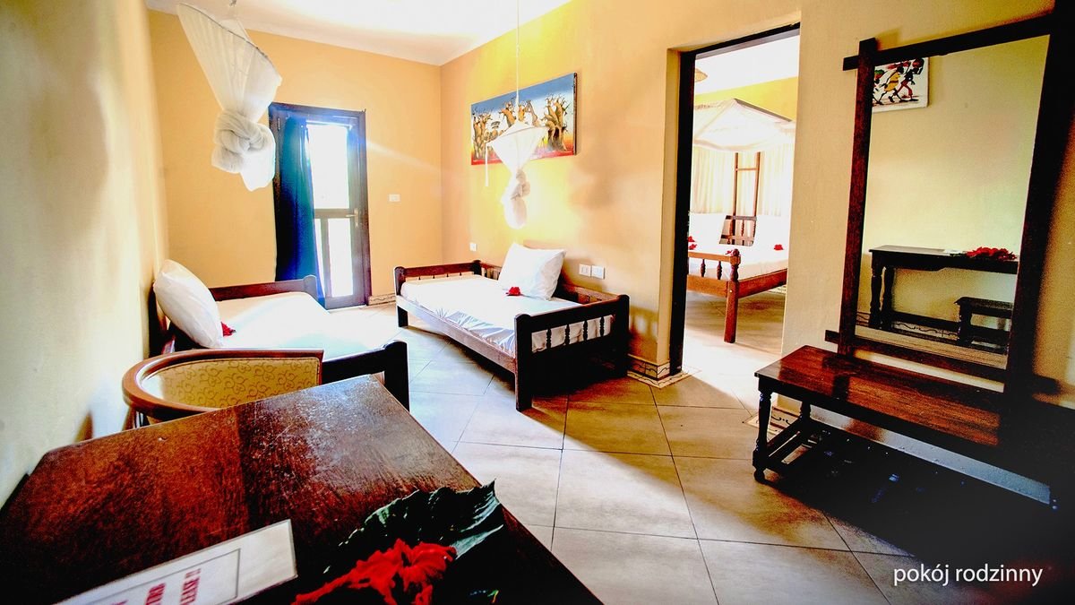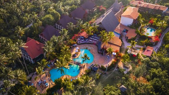 Zapraszamy na niezapomniane wakacje na rajskim Zanzibarze. Położony tuż przy plaży z drobnym, białym piaskiem oblewanej przez turkusowe wody Oceanu Indyjskiego, jest doskonałą propozycją dla osób pragnących wypocząć w cichej i spokojnej okolicy, w otoczeniu egzotycznej przyrody i zachwycających krajobrazów. Utrzymany w klimacie zanzibarskiej wioski, oferuje zakwaterowanie w przytulnych pokojach, z których każdy został zaprojektowany w typowym, lokalnym stylu. Na miejscu wszystko, co potrzebne do udanego urlopu – restauracje kuszące bogactwem smaków, bary słynące z kolorowych i orzeźwiających koktajli oraz zadbany basen idealnie wkomponowany w tropikalny, hotelowy ogród. Miłośnicy aktywnego spędzania czasu chętnie poćwiczą na siłowni i pograją w siatkówkę plażową, podczas gdy fani słodkiego lenistwa skorzystają z odprężających masaży i zabiegów przeprowadzanych w centrum spa. O komfort i zadowolenie wczasowiczów zadba miła i chętna do pomocy obsługa charakteryzująca się indywidualnym podejściem do każdego Gościa.