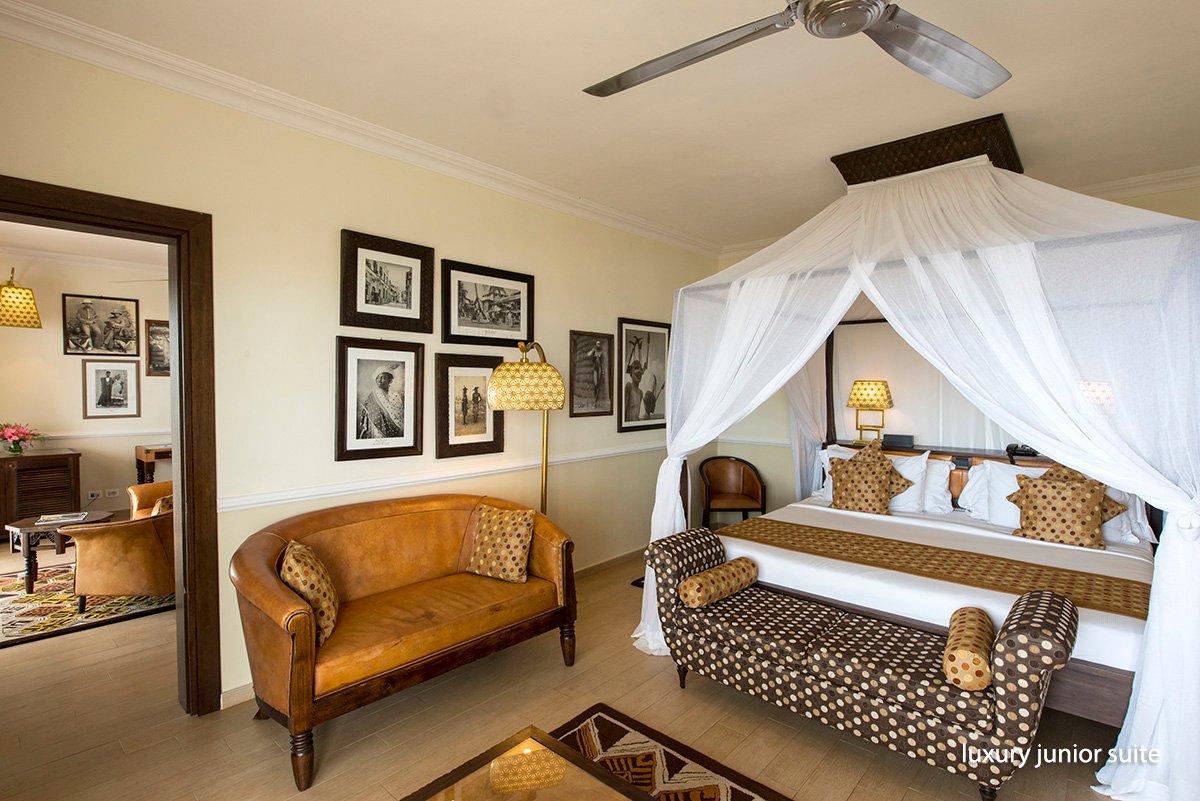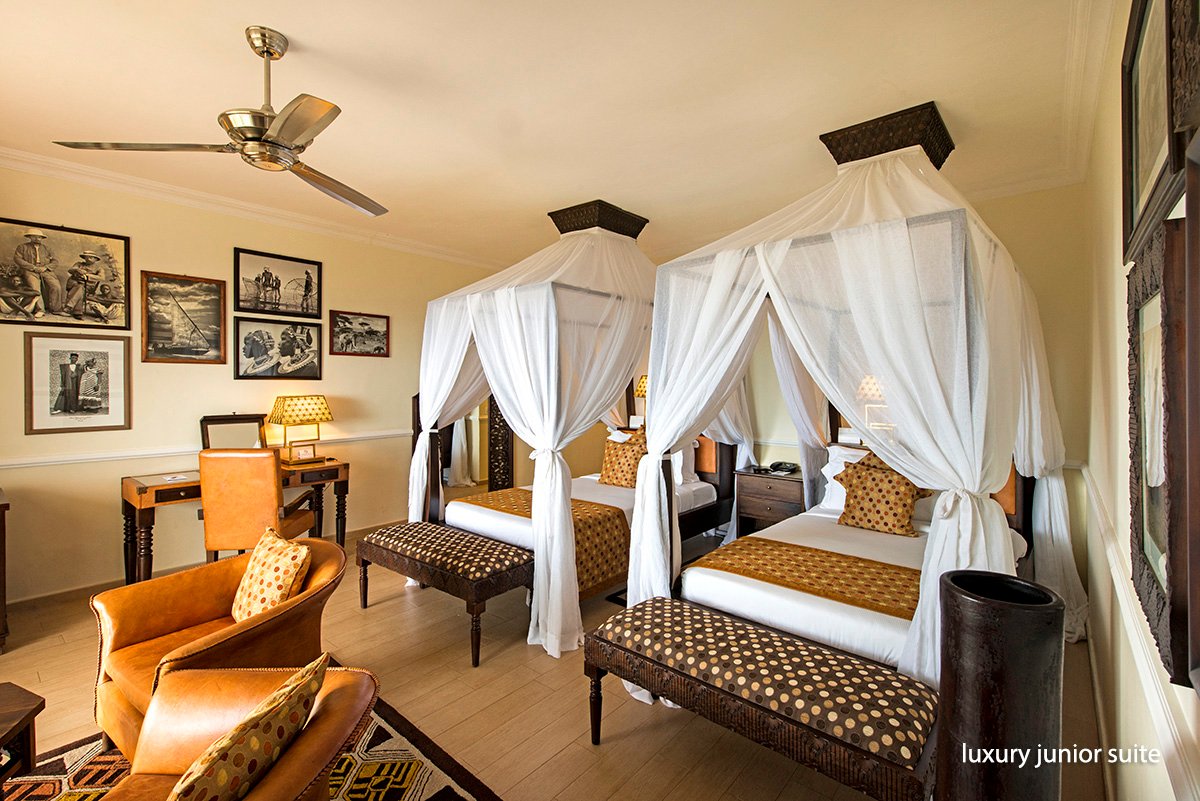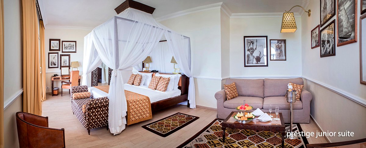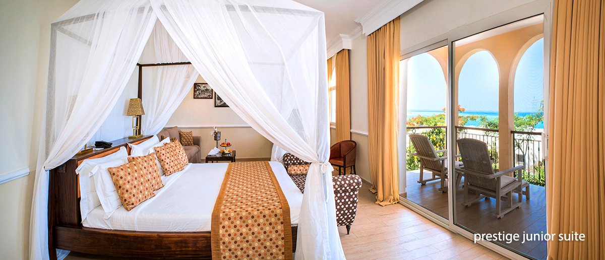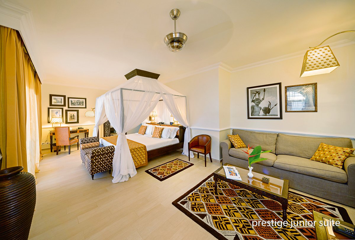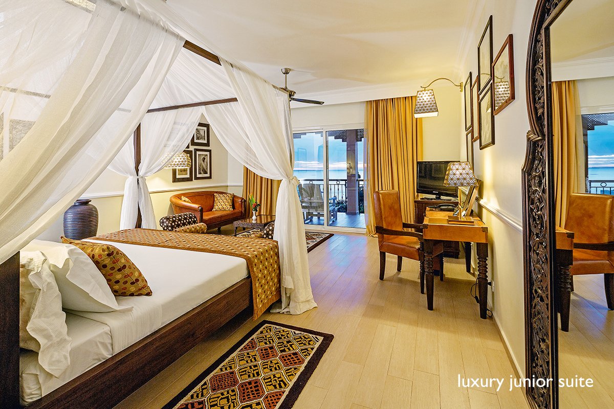 luxury junior suite 2-os. (możliwość 1 dostawki), ok. 45 m², indywidualnie sterowana klimatyzacja, wentylator, moskitiera, łazienka (prysznic; suszarka, szlafroki), osobne wc, bidet; garderoba, internet bezprzewodowy, telewizor, odtwarzacz DVD, telefon, sejf, zestaw do kawy/herbaty, minibar, 2 razy dziennie serwis pokojowy; balkon lub taras (stolik i krzesełka); wszystkie pokoje skierowane w stronę morza; prestige junior suite dla maks. 4 os., ok. 51 m², optycznie wydzielona część dzienna, wyposażenie jak w pokoju luxury junior suite.