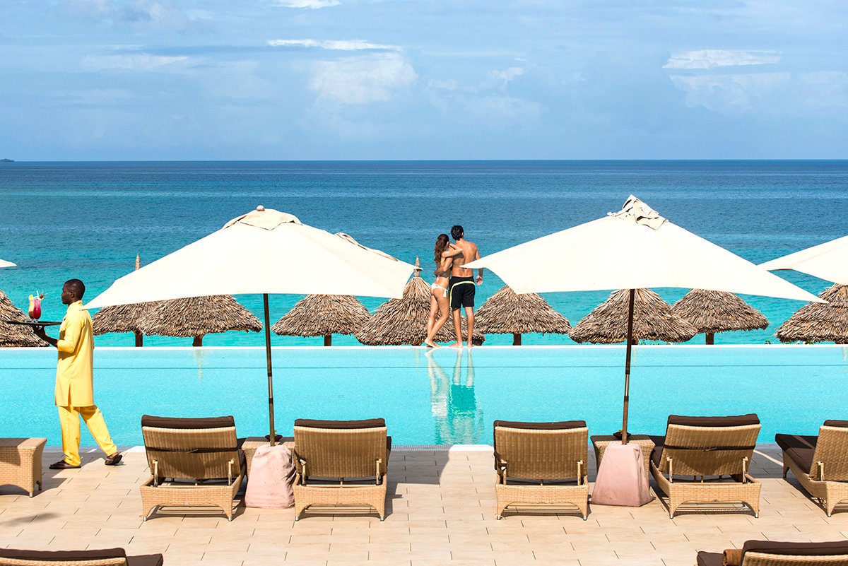 pięciogwiazdkowy, luksusowy, zbudowany w 2013 r., 100 suite, budynek główny i pawilony, 1 piętro, przestronne lobby, całodobowa recepcja, restauracja Aqua przy oceanie – dania w formie bufetu, obsługa kelnerska, kuchnia międzynarodowa, live-cooking, dania wegetariańskie, 2 restauracje à la carte: Carrivorous & More – ryby i owoce morza (płatna: ok. 45 USD/os.), Ishi Teppanyaki – kuchnia orientalna (płatna: ok. 35 USD/os.), w obu restauracjach à la carte menu degustacyjne w ramach all inclusive, 3 bary: Sunset przy basenie, Horizon Tarrace Cigar & Shisha przy basenie, Makuti na plaży; butik z pamiątkami, biżuterią i kosmetykami; centrum konferencyjne dla 160 os., taras z widokiem na ocean, ogród, bezpłatny internet bezprzewodowy; za opłatą: room-service, fryzjer; na terenie hotelu występują niewielkie różnice poziomów; akceptowane karty kredytowe Visa, Master Card, American Express; hotel przyjmuje Gości powyżej 18. roku życia.