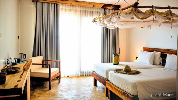 Położony na malowniczym wybrzeżu, zaledwie kilka kroków od pięknej egzotycznej plaży z drobnym, białym piaskiem i turkusową wodą Oceanu Indyjskiego. Zaprojektowany w afrykańskim stylu, został pięknie wkomponowany w palmowy ogród, w którego cieniu można skryć się w upalne dni. Koniecznie skorzystaj z atrakcji jakie oferuje hotel – popływaj w basenie, zregeneruj siły w centrum spa lub poczuj wiatr we włosach podczas lekcji w szkole kitesurfingu. Po całym dniu odpocznij w przestronnych pokojach urządzonych w lokalnym stylu, wyposażonych we wszystko co potrzebne do relaksu. To wszystko jest w zasięgu ręki – wybierz się z nami na rajskie wakacje na Zazibarze w stylu adults only!