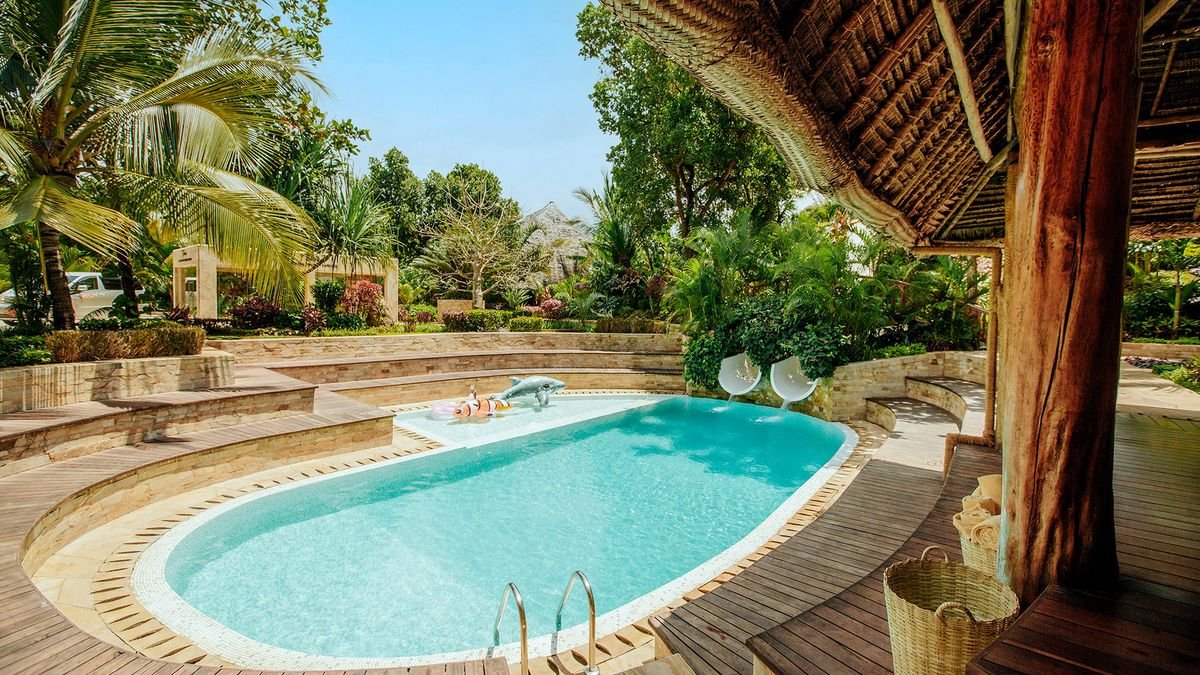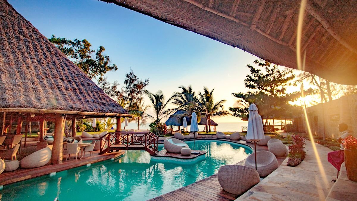 Pongwe, publiczna, piaszczysta, długa, pod klifem, łagodne zejście do morza, bezpośrednio przy hotelu, zejście do plaży schodami; hotelowa, piaszczysta, sztucznie usypana, bezpośrednio przy basenie, bezpłatne parasole i leżaki.