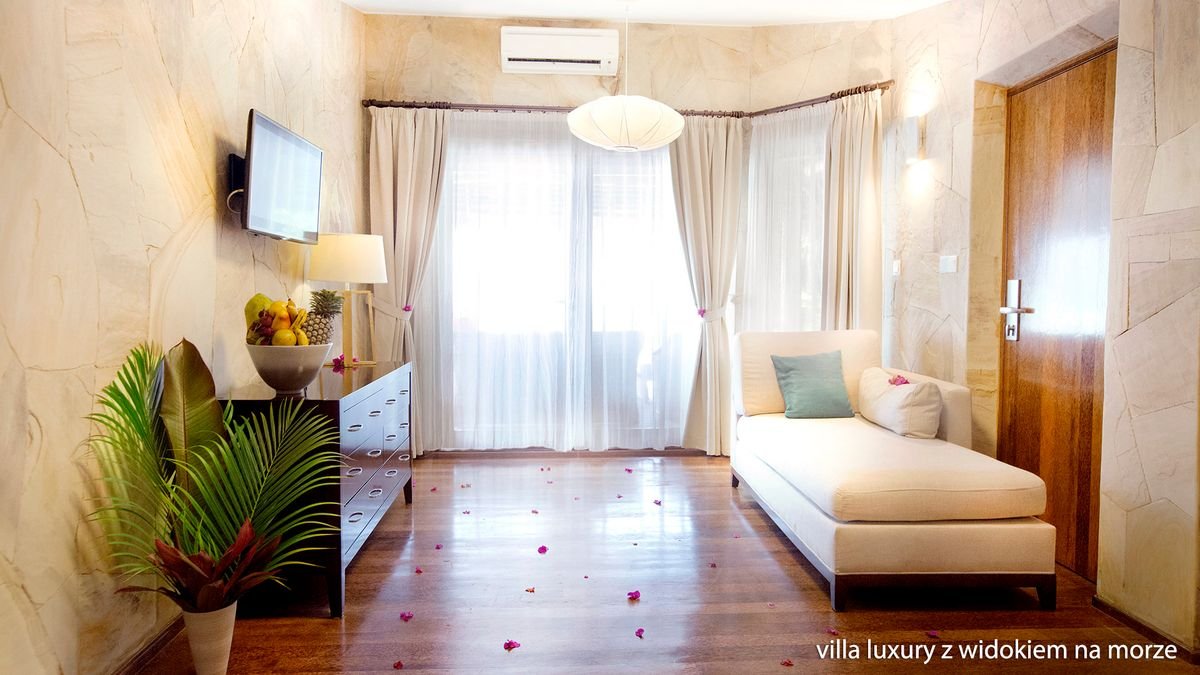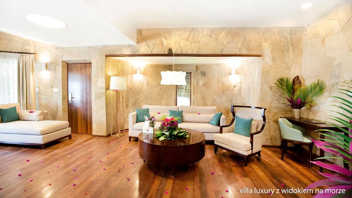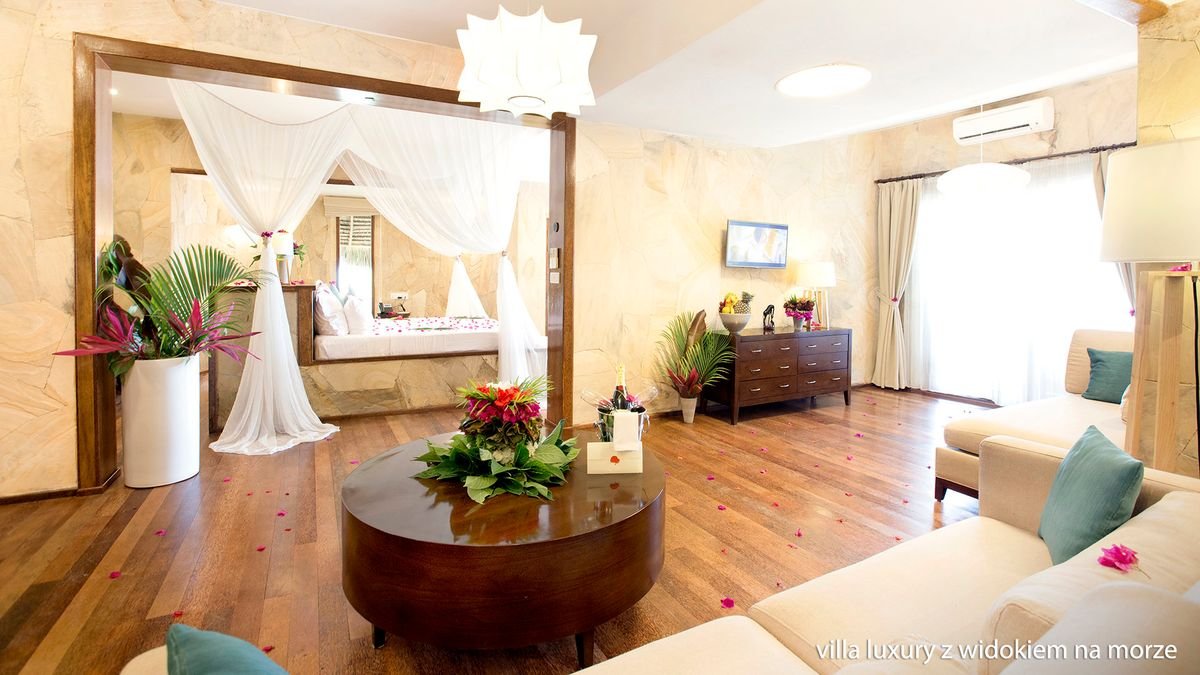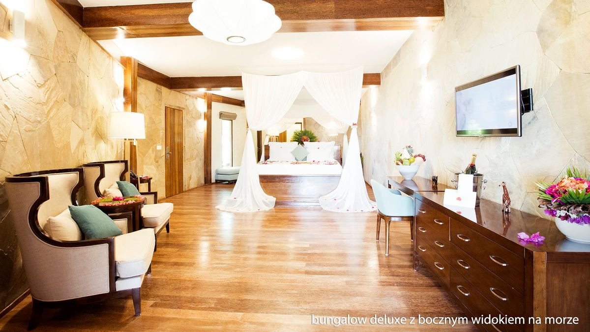 bungalow deluxe: 2-os. (możliwość 1 dostawki), ok. 120 m², klimatyzowany, łazienka (prysznic, wc; suszarka, zestaw kosmetyków, szlafrok), internet bezprzewodowy, telewizja satelitarna, telefon, sejf; taras (hamak, meble ogrodowe), widok na ogród; villa luxury z widokiem na morze: 4-os., ok. 190 m², klimatyzowana, łazienka (wanna i prysznic, wc; suszarka, zestaw kosmetyków, szlafrok), wyposażenie jak w bungalow deluxe, frontalny widok na morze; bungalow deluxe z bocznym widokiem na morze i villa luxury z widokiem na morze na zamówienie, za dopłatą.