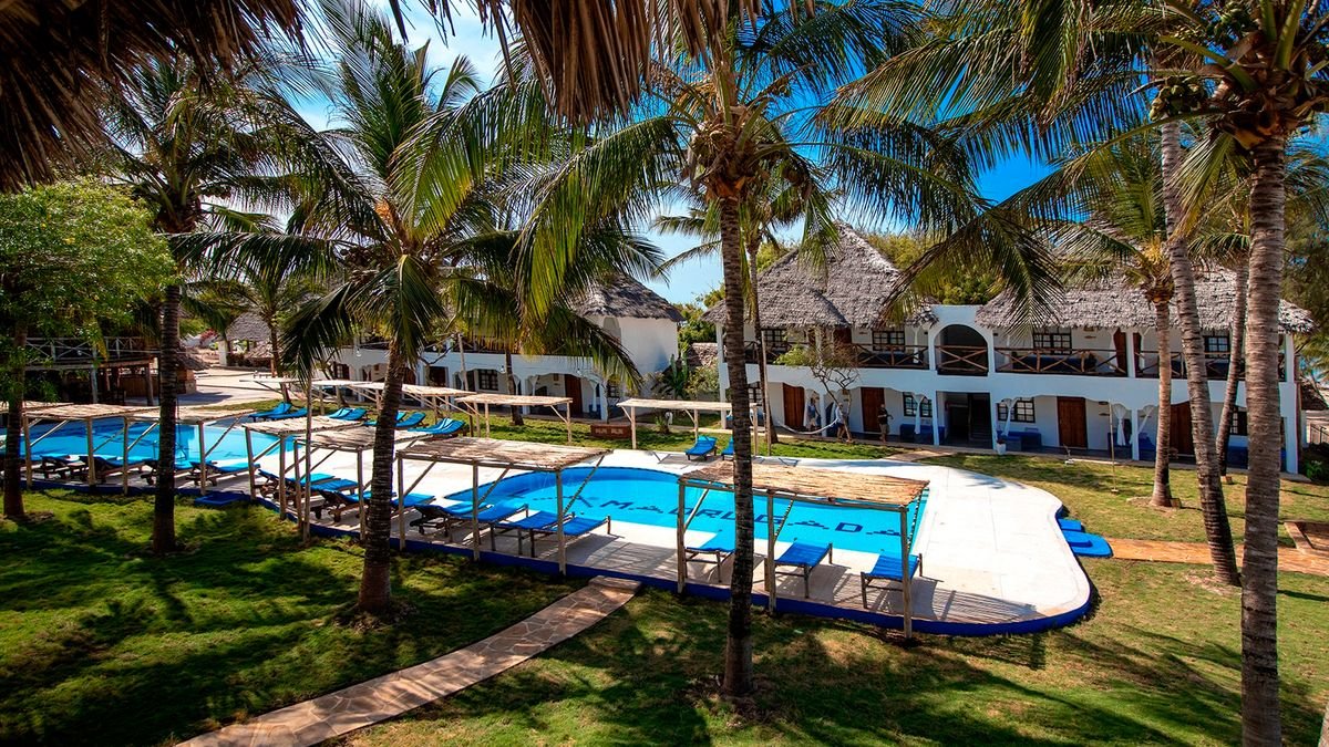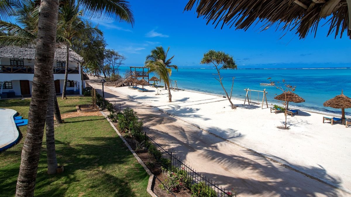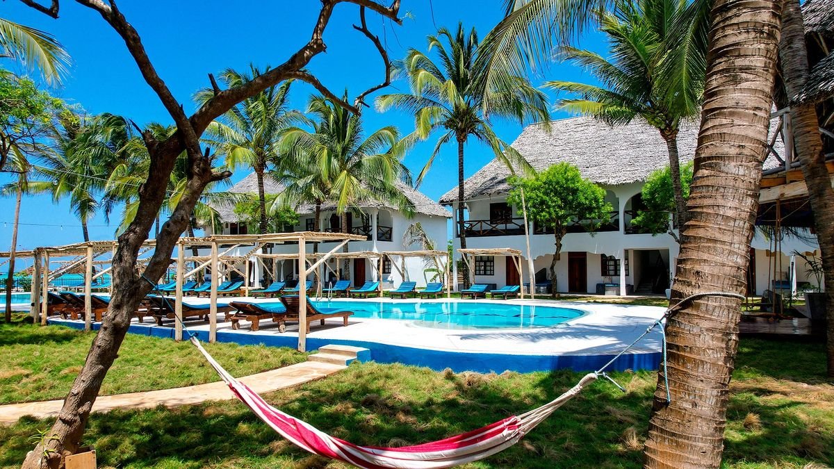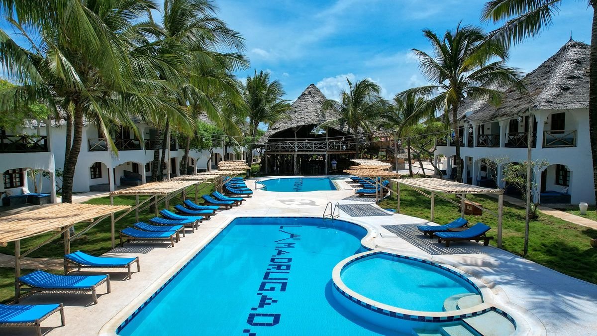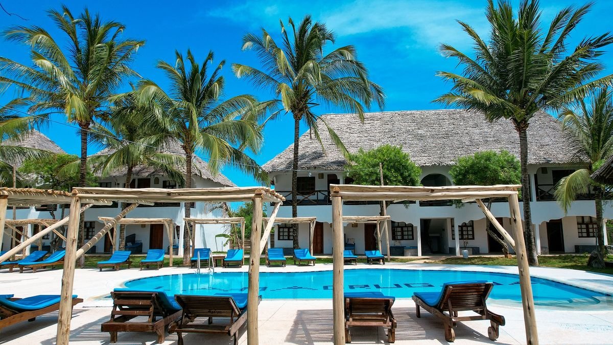 Egzotyka w zanzibarskim wydaniu! Świetnie położony, tuż przy pięknej plaży z jasnym piaskiem i bezpłatnym serwisem plażowym, w tropikalnym ogrodzie pełnym strzelistych palm, zaprasza na wakacje w cudownych okolicznościach natury! Panuje tu niezwykle kameralna atmosfera, która sprzyja romantycznym wieczorom we dwoje. Utrzymany w afrykańskim stylu, niezwykle klimatyczny, oferuje pokoje w bungalowach z widokiem na ogród oraz 2 baseny, w których można się schłodzić podczas upalnych dni. Skosztuj koktajli chowając się przed słońcem w cieniu palm, opalaj się na leżaku, spróbuj sił w sportach wodnych lub wybierz się na wycieczkę w poszukiwaniu delfinów – wybierz to co lubisz, nie rezygnując przy tym z pięknych widoków!