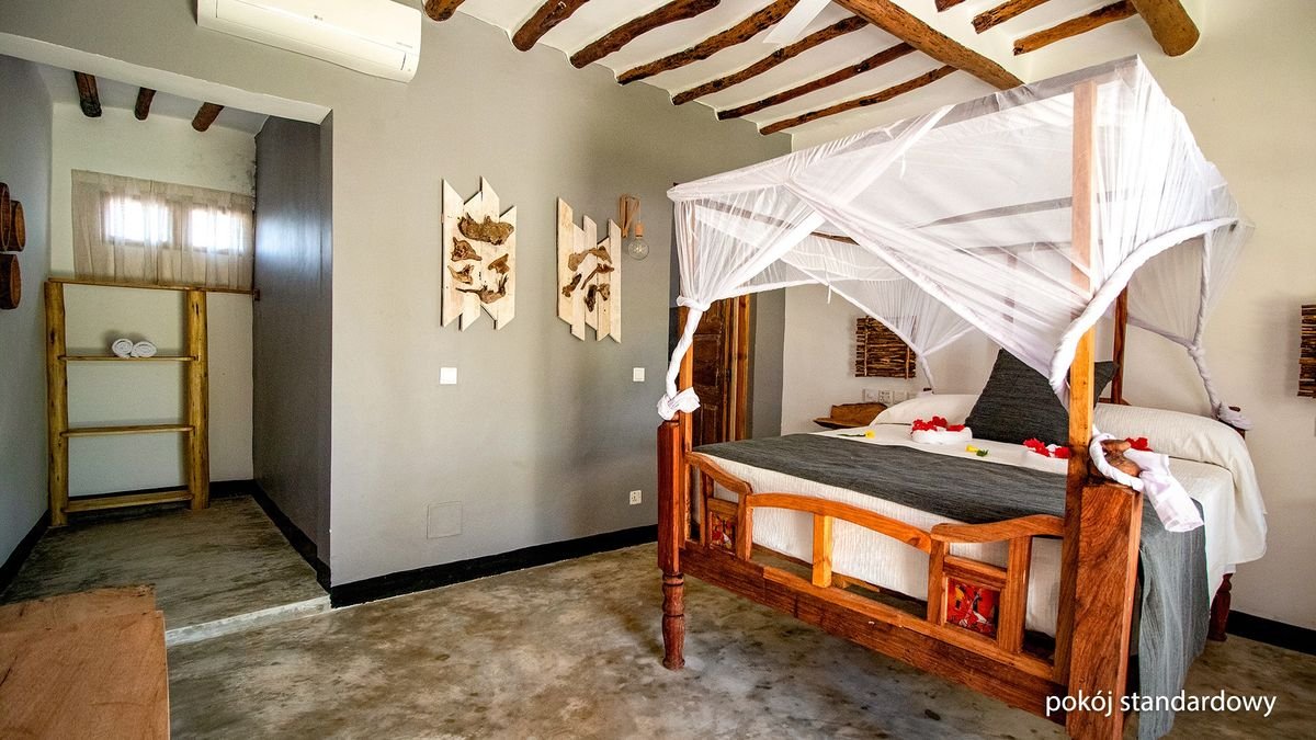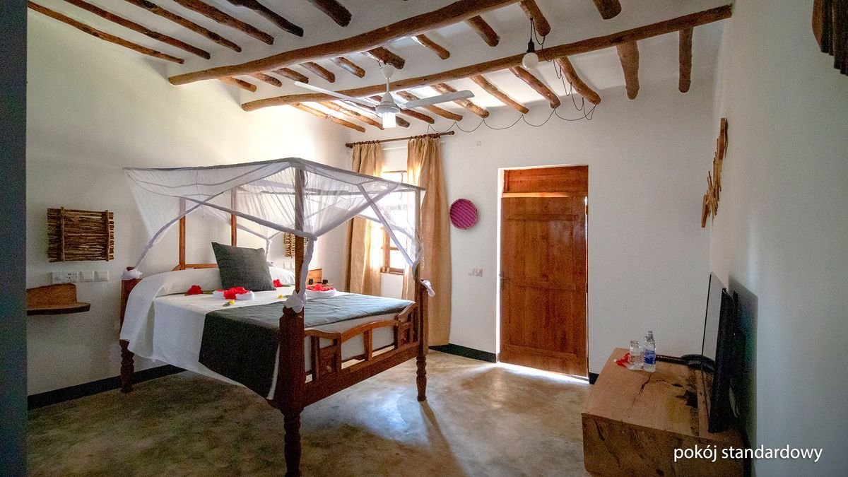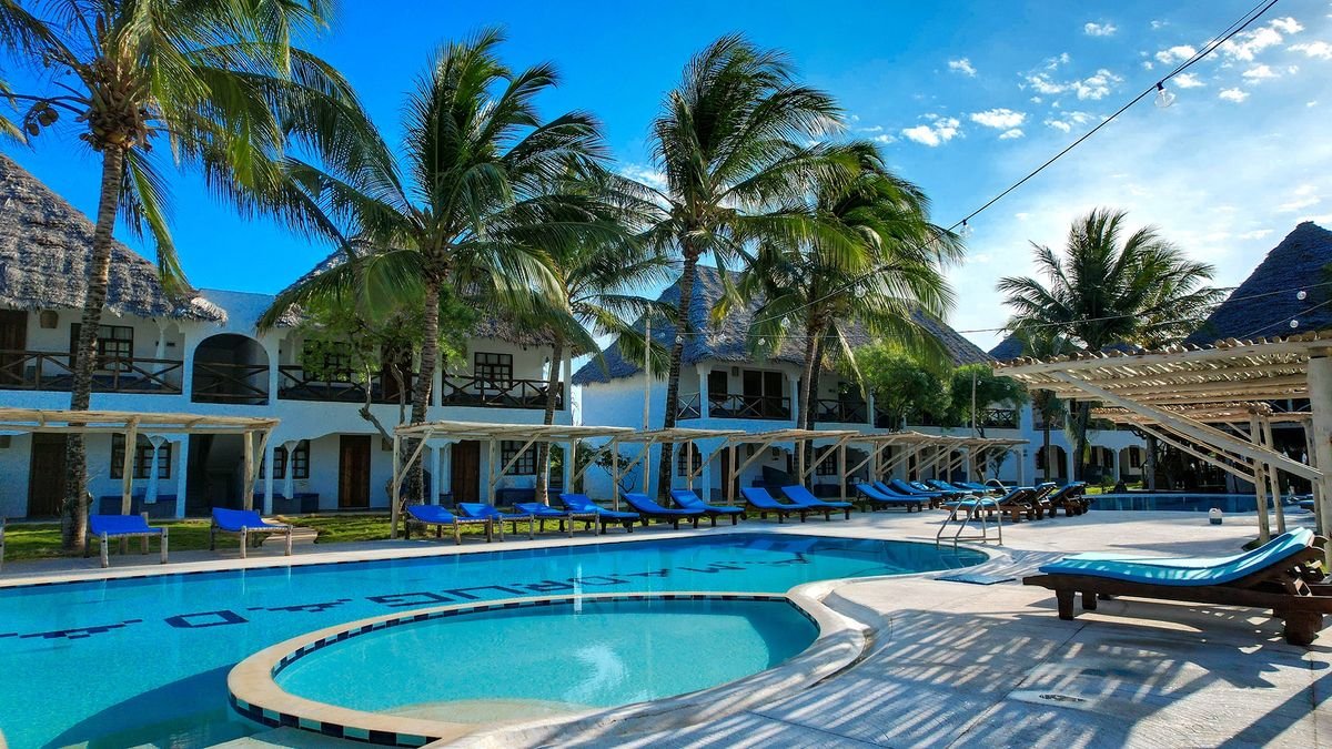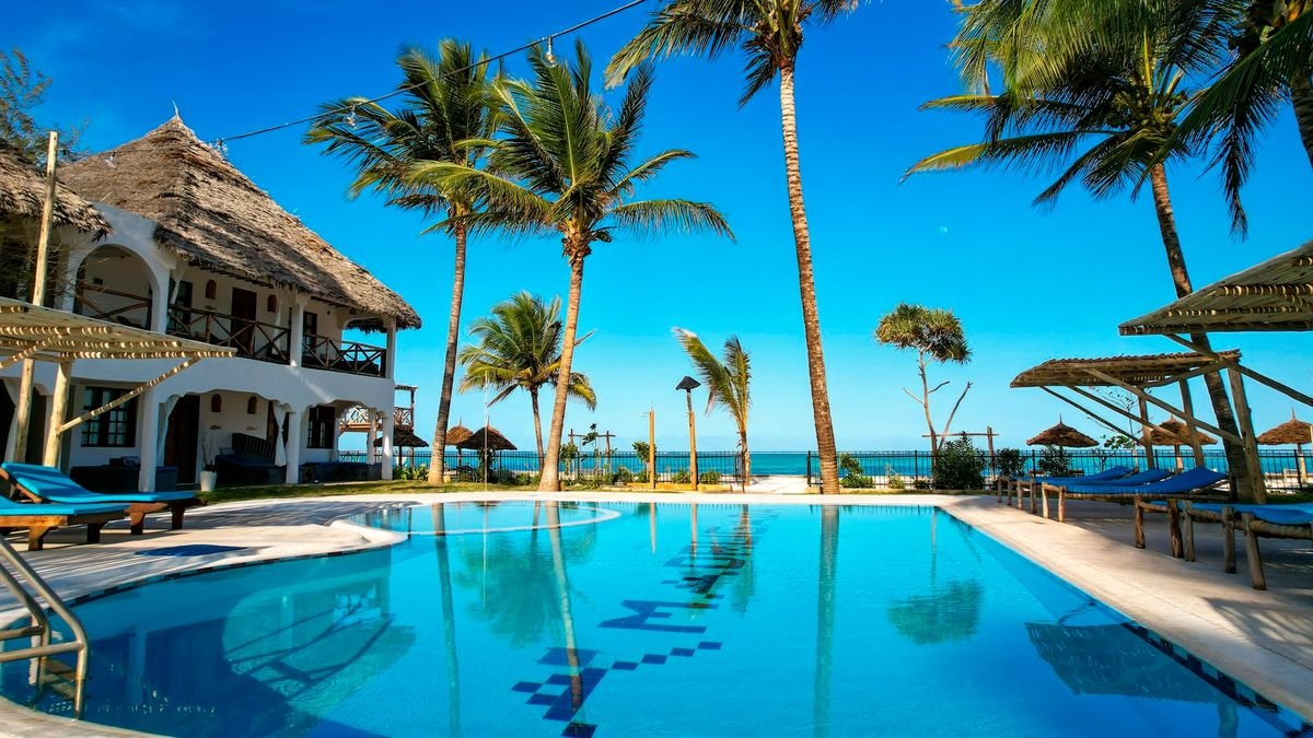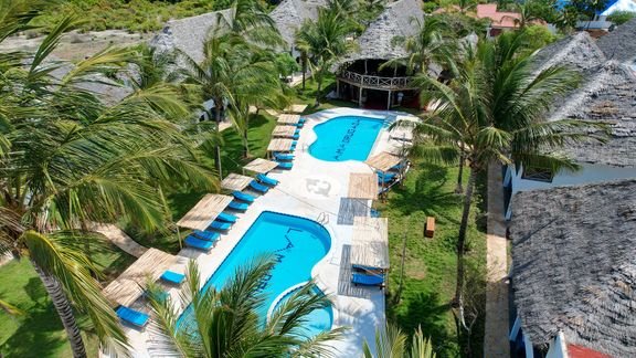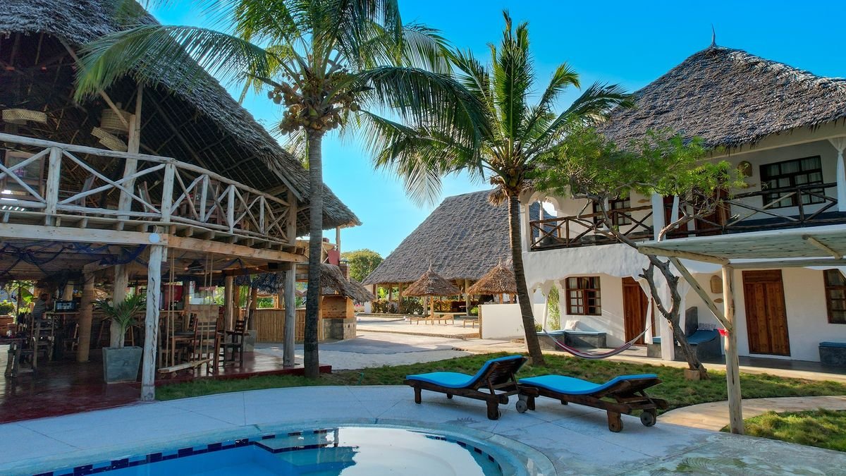 Egzotyka w zanzibarskim wydaniu! Świetnie położony, tuż przy pięknej plaży z jasnym piaskiem i bezpłatnym serwisem plażowym, w tropikalnym ogrodzie pełnym strzelistych palm, zaprasza na wakacje w cudownych okolicznościach natury! Panuje tu niezwykle kameralna atmosfera, która sprzyja romantycznym wieczorom we dwoje. Utrzymany w afrykańskim stylu, niezwykle klimatyczny, oferuje pokoje w bungalowach z widokiem na ogród oraz 2 baseny, w których można się schłodzić podczas upalnych dni. Skosztuj koktajli chowając się przed słońcem w cieniu palm, opalaj się na leżaku, spróbuj sił w sportach wodnych lub wybierz się na wycieczkę w poszukiwaniu delfinów – wybierz to co lubisz, nie rezygnując przy tym z pięknych widoków!