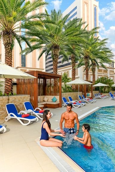 Miejski, położony w dzielnicy Al Jaddaf i dobrze skomunikowany z najważniejszymi atrakcjami, jest idealny dla par lubiących łączyć zwiedzanie z wypoczywaniem lub dla podróżujących w interesach. Hotel oferuje 2 sale konferencyjne, komfortowe pokoje i ładny basen, a nowoczesne wnętrza i miła obsługa są doceniane przez Gości, którzy chwalą również smaczne dania w hotelowych restauracjach. Będąc tu warto wybrać się na wycieczkę do parku dzikiej przyrody Ral al-Khor, gdzie żyją flamingi!