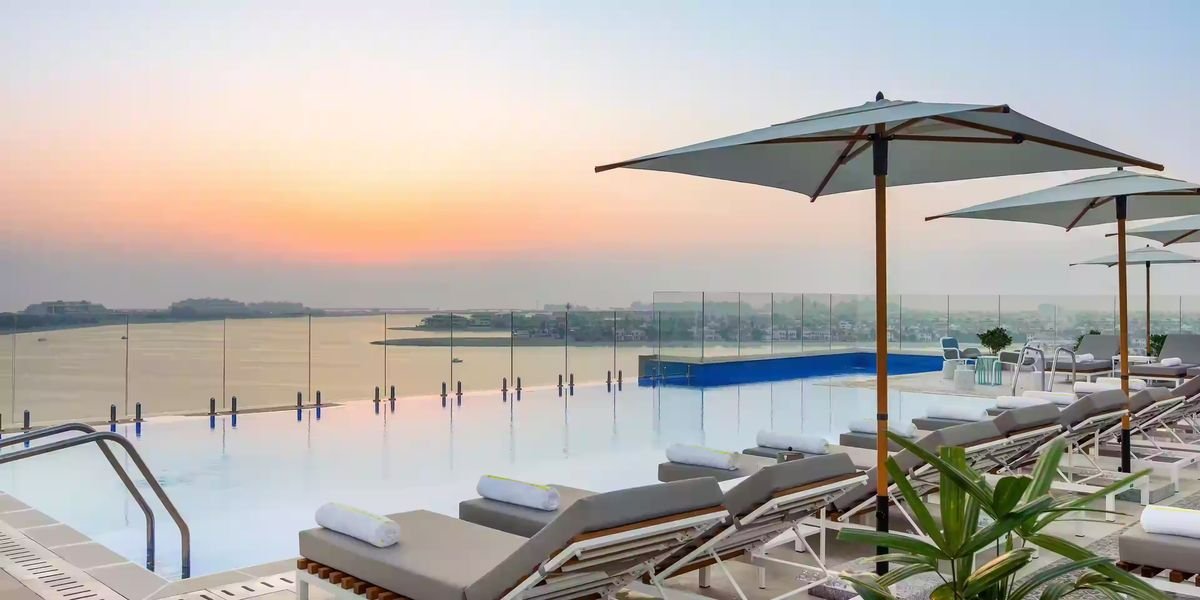Nowoczesny hotel położony tuż przy promenadzie na sztucznej wyspie Palma Jumeirah – jest idealną propozycją na wakacje pełne atrakcji i beztroskiego wypoczynku. Goście uwielbiają spędzać czas na dachu, skąd roztacza się piękny widok na miasto i Zatokę Perską. Znajduje się tam fantastyczna strefa relaksu – basen infinity oraz bar serwujący orzeźwiające koktajle. Doskonale wypoczniesz także w eleganckich i przestronnych pokojach wyposażonych w najpotrzebniejsze udogodnienia. Spędź dzień na plaży, spaceruj wśród nowoczesnych wieżowców i skorzystaj z atrakcji jakie oferuje Dubaj!