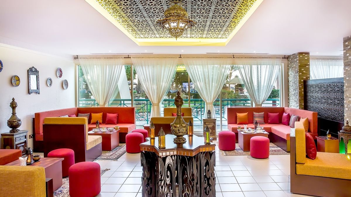 pięciogwiazdkowy, elegancki i stylowy, zbudowany w 2005 r., 278 pokoi, 1 budynek, 4 piętra, 8 wind, przestronne i eleganckie lobby, całodobowa recepcja, 2 restauracje – dania w formie bufetu: główna Sevilla – kuchnia międzynarodowa, Azur – kuchnia śródziemnomorska, 2 restauracje – obsługa kelnerska: La Piscine – kuchnia bliskowschodnia i Wanasah – kuchnia arabska; w restauracjach dostępne foteliki i menu dla dzieci, dania wegetariańskie, Cafe Mozart, bary: Black Pearl w okolicy lobby i La Piscine w piwnicy; małe centrum handlowe, kantor; centrum konferencyjne dla 800 osób, bezpłatny internet bezprzewodowy; za opłatą: opiekunka do dziecka, fryzjer, salon piękności, wypożyczalnia samochodów; akceptowane karty kredytowe: Visa, MasterCard.