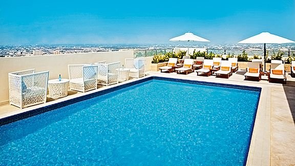 czterogwiazdkowy, zbudowany w 2010 r., odnowiony w 2013 r., 126 pokoi, 1 budynek, 16 pięter, 3 windy, eleganckie lobby, całodobowa recepcja, restauracja Podium – dania w formie bufetu, kuchnia międzynarodowa, dostępne foteliki i menu dla dzieci, dania wegetariańskie, 3 bary, w tym bar przy basenie na dachu; sklep z pamiątkami, prasa, kantor; 2 sale konferencyjne łącznie dla ok. 40 osób, taras słoneczny na dachu, internet bezprzewodowy w lobby, punt internetowy; za opłatą: room-service, sejf w recepcji, opiekunka do dziecka (na zamówienie), salon urody, fryzjer, pralnia, wypożyczalnia samochodów; akceptowane karty kredytowe: Visa, MasterCard, American Express, Diners Club.