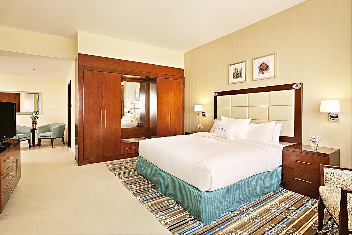 deluxe: 2-os. (możliwość 1 dostawki), ok. 35 m², indywidualnie sterowana klimatyzacja, łazienka (wanna lub prysznic, wc; suszarka), telewizor, telefon, sejf, zestaw do kawy/herbaty, żelazko i deska do prasowania; za opłatą: internet przewodowy (ok. 40 AED/godz., ok. 80 AED/24 godz.), minibar; bezpłatne łóżeczko dla dziecka do 2 lat na zamówienie przed przyjazdem.