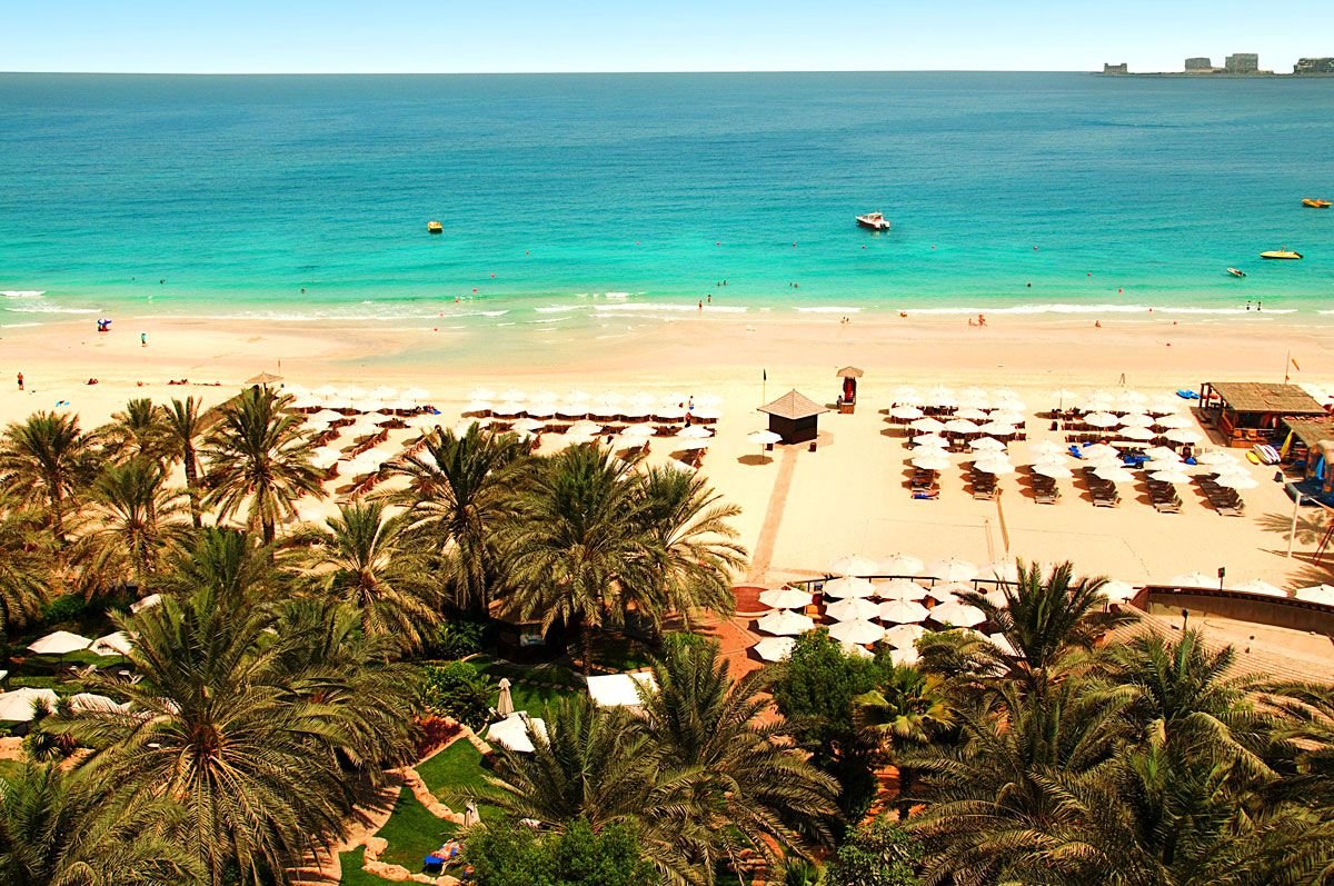 Jumeirah, publiczna, z wydzielonym odcinkiem hotelowym, drobnopiaszczysta, łagodne zejście do morza, bezpośrednio przy hotelu, bezpłatne parasole, leżaki, materace i ręczniki.