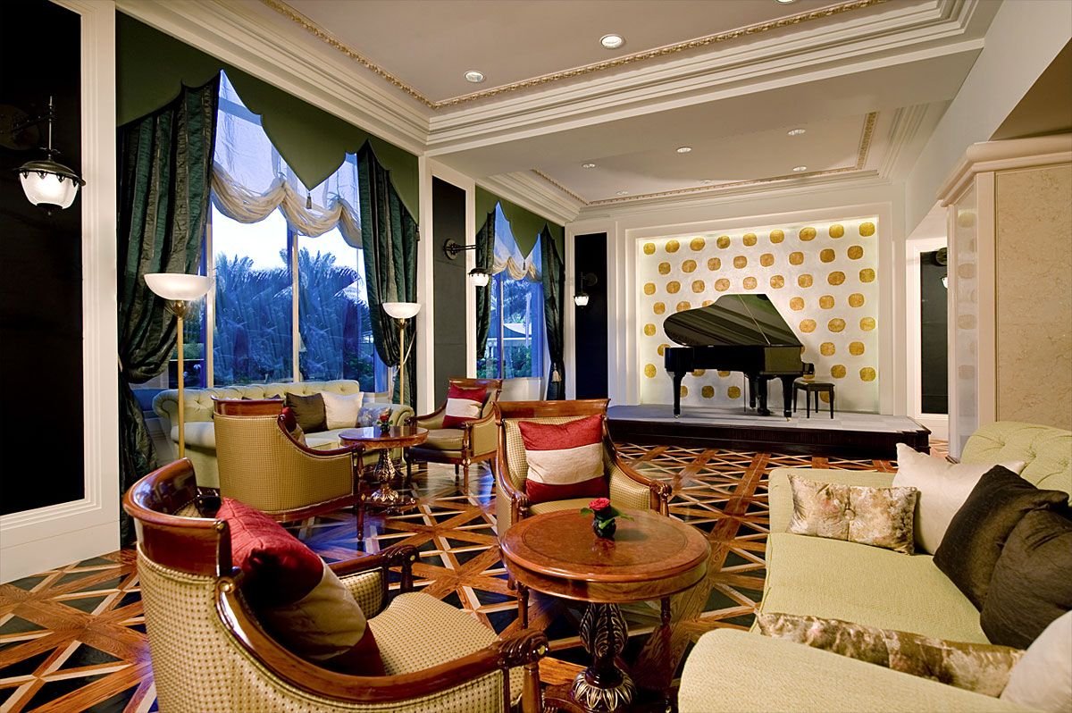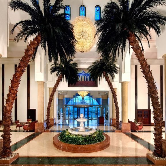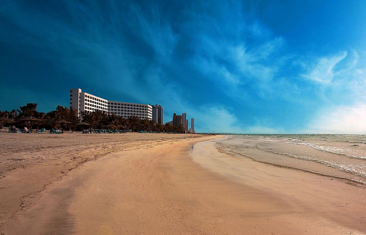 pięciogwiazdkowy, zbudowany w 1998 r., odnowiony w 2012 r., 181 pokoi, 2 budynki, 8 pięter, 3 windy, lobby, całodobowa recepcja, 4 restauracje: Hai Tao - kuchnia azjatycka, Cafe Kranzler - kuchnia międzynarodowa, Sabella's - kuchnia włoska, Bukhara - kuchnia indyjska, 5 barów, w tym przy basenie i na plaży, punkt wymiany walut, sklep z pamiątkami; centrum konferencyjne dla 800 osób, ogród; za opłatą: internet bezprzewodowy (ok. 30 AED/godz., ok. 100 AED/doba), room-service, fryzjer, pralnia; akceptowane karty kredytowe: Visa, MasterCard. Przy zakwaterowaniu wymagany jest depozyt w wysokości ok. 100-300 USD/os. lub karta kredytowa, na której blokowana jest kwota w wysokości wymaganego depozytu.