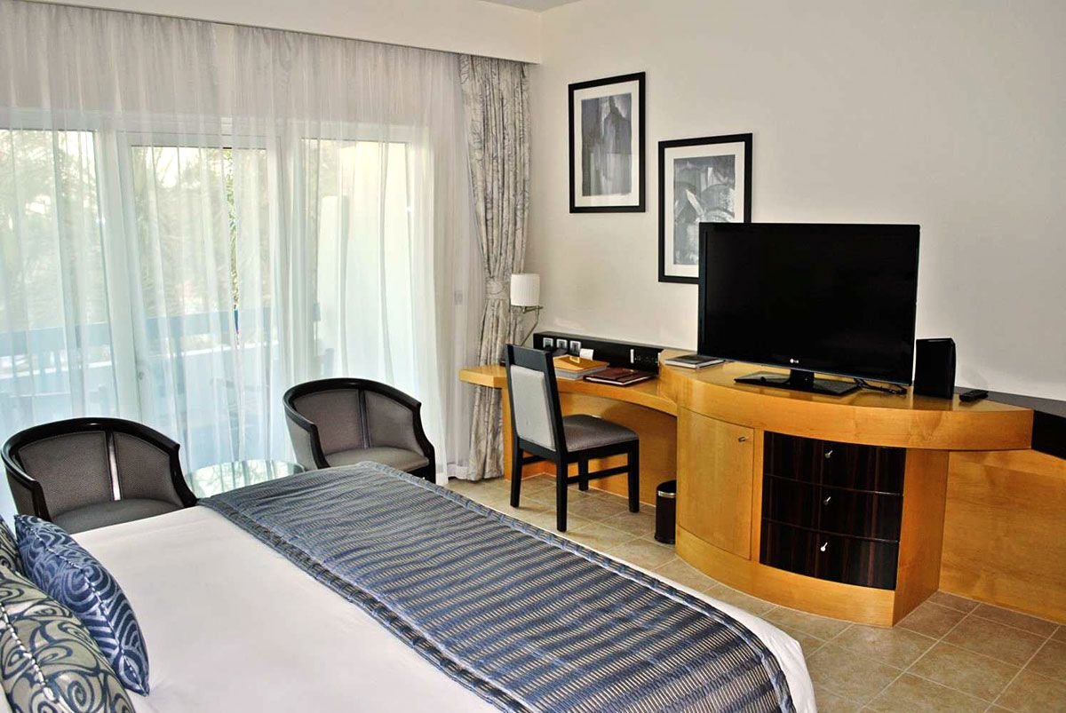 deluxe: 2-os. (możliwość 1 dostawki), ok. 36 m², klimatyzowany, łazienka (wanna lub prysznic, wc; suszarka), telewizja satelitarna, telefon, sejf; za opłatą: internet bezprzewodowy (ok. 30 AED/godz., ok. 100 AED/doba), mini-bar (płatny wg konsumpcji); balkon lub taras; przy zakwaterowaniu 2 osób dorosłych i dzieci klienci otrzymują pokój z 2 łóżkami lub łóżkiem małżeńskim, bez dostawki.