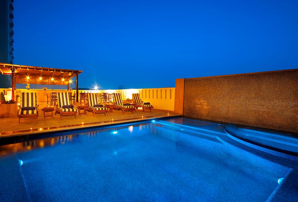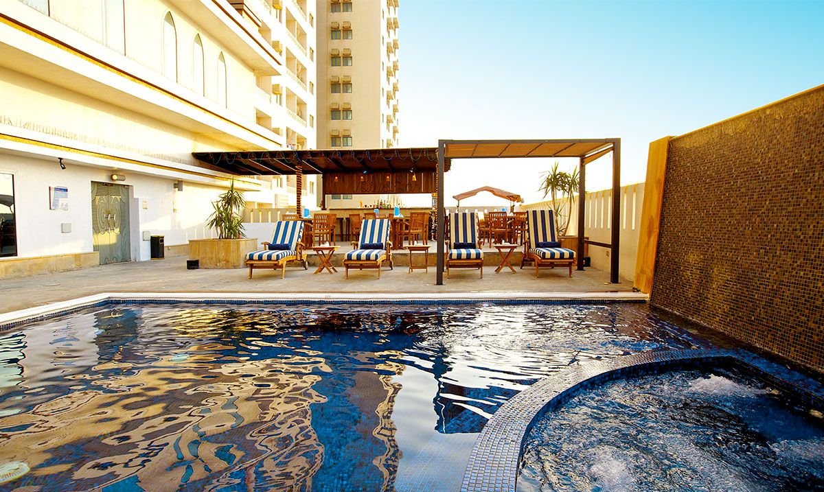 Elegancki miejski hotel położony blisko centrum Ras al – Khaimah. Na miejscu do dyspozycji klientów są dwie restauracje, coffee shop z tradycyjną shishą, pub, nieduży basen i siłownia. Goście mogą korzystać z udogodnień sportowych i plaży z bezpłatnymi parasolami i leżakami przy hotelu Bin Majid Beach, do której dowozi bezpłatny bus hotelowy. Hotel jest bardzo zadbany, ma nowoczesne, przestronne i gustownie urządzone pokoje.