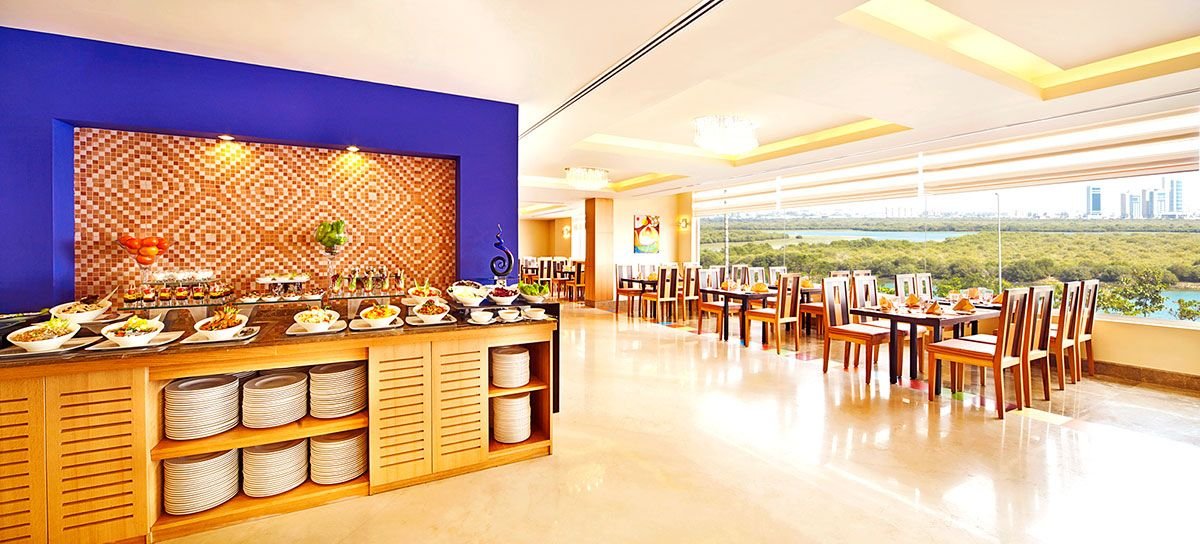 czterogwiazdkowy, elegancki i nowoczesny, zbudowany w 2012 r., 186 pokoi, 18 pięter, 2 windy, eleganckie lobby, całodobowa recepcja, restauracja Rainbow – z panoramicznym widokiem na lagunę i lasy mangrowe, dania w formie bufetu, kuchnia międzynarodowa, dostępne foteliki dla dzieci, dania wegetariańskie, Noodles Corner – à la carte, kuchnia chińska, sushi, dostępne dania wegetariańskie, Al Rahala – w hotelu Bin Majid Beach, dostępna dla klientów hotelu Mangrove w porze lunchu; Blu Bar przy basenie, Side Walk - w lobby, kawiarnia (shisha za dodatkową opłatą), Aqua Bar w hotelu Bin Majid; kantor, 3 sale konferencyjne, każda dla ok. 40 osób, bezpłatny internet bezprzewodowy w całym hotelu; za opłatą: room-service, wypożyczalnia samochodów, lekarz na wezwanie, opiekunka do dziecka, pralnia; akceptowane karty kredytowe: Visa, MasterCard, American Express.
